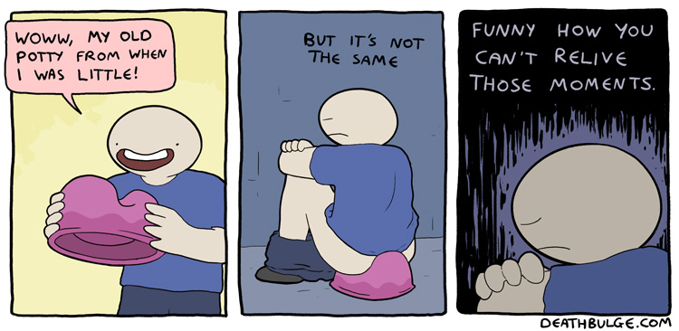 >>151718239>This current strip was from a little over ten years ago. The index page on the website says it was published in september 2015.Part of the reason this webcomic might not be well known anymore is that the bulk of his comics came out around that time period. In 2018 it went on hiatus (for the most part) until this year, while the creator was developing the Deathbulge video game.Hopefully he's able to keep putting out stuff as I liked the comic a lot.