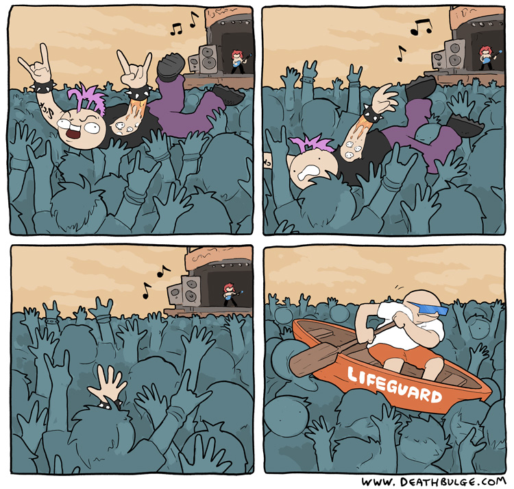 >The trouble with punk rock concerts is the frequency of people with grey mohawks being mistaken for sharks.