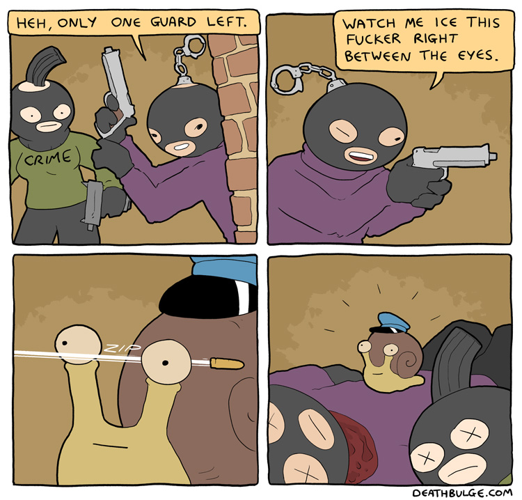 >The only thing slower than a snail is their victim's deaths.