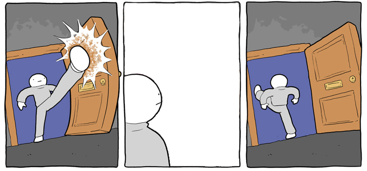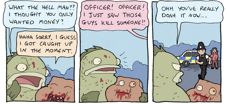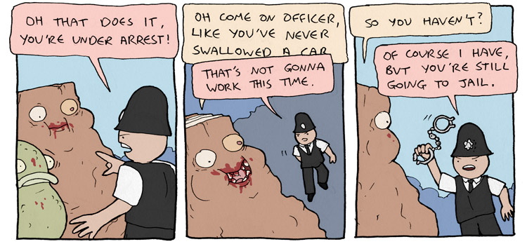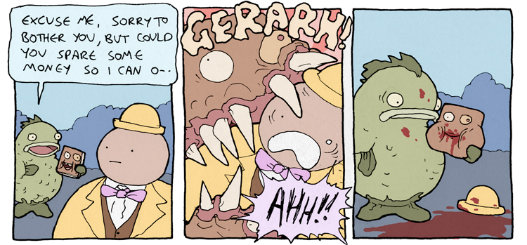 alt text:>Wow Dan hasn't posted a new comic in ages I wonder if it's because he's chipping away at another really big epic comi-NOPE, 3 PANEL COMIC. BETTER LUCK NEXT TIME.