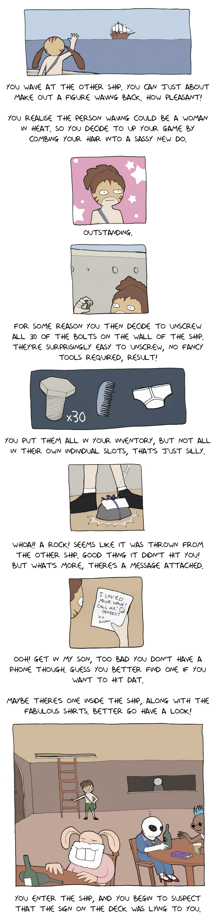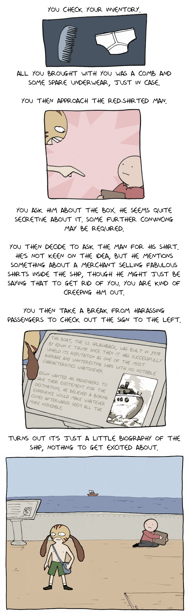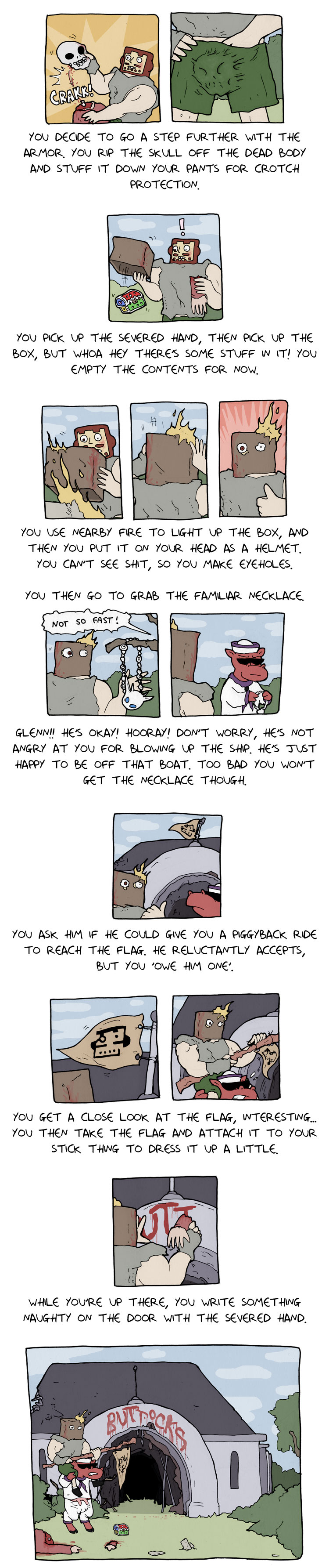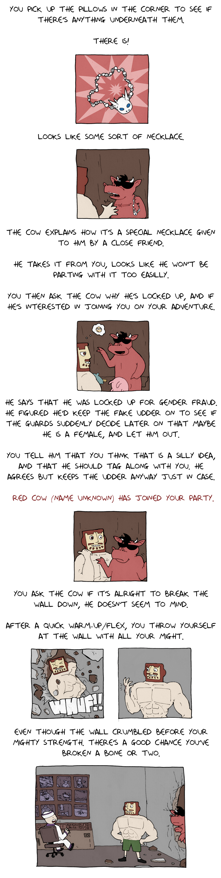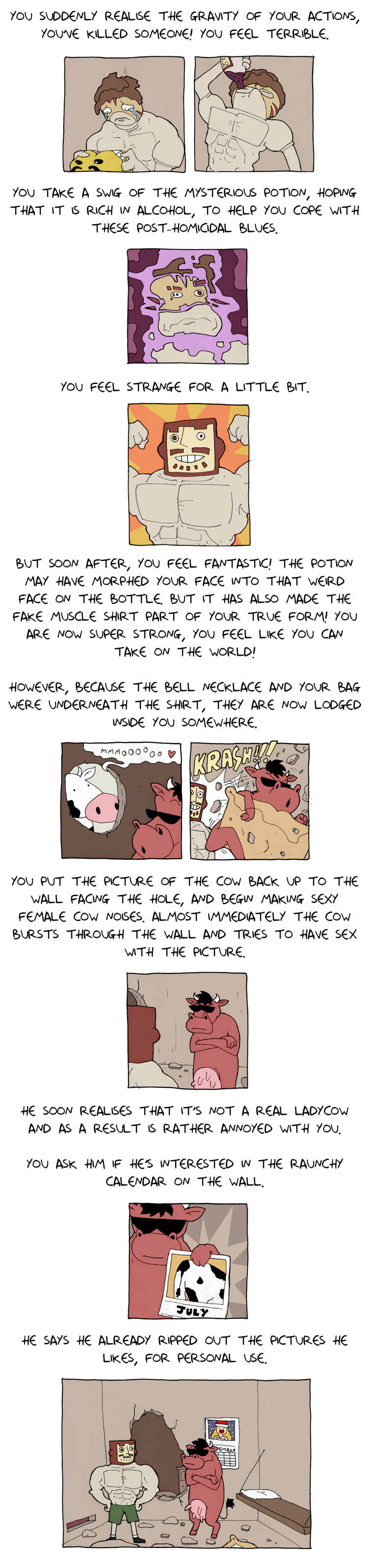 >>151723625>Here's the link to that: https://deathbulge.com/adventures/1>I'm not sure if I actually read it before. It's 50 pages and is complete.I'm gonna story time this little adventure as well I guess. There's no alt text on it.
