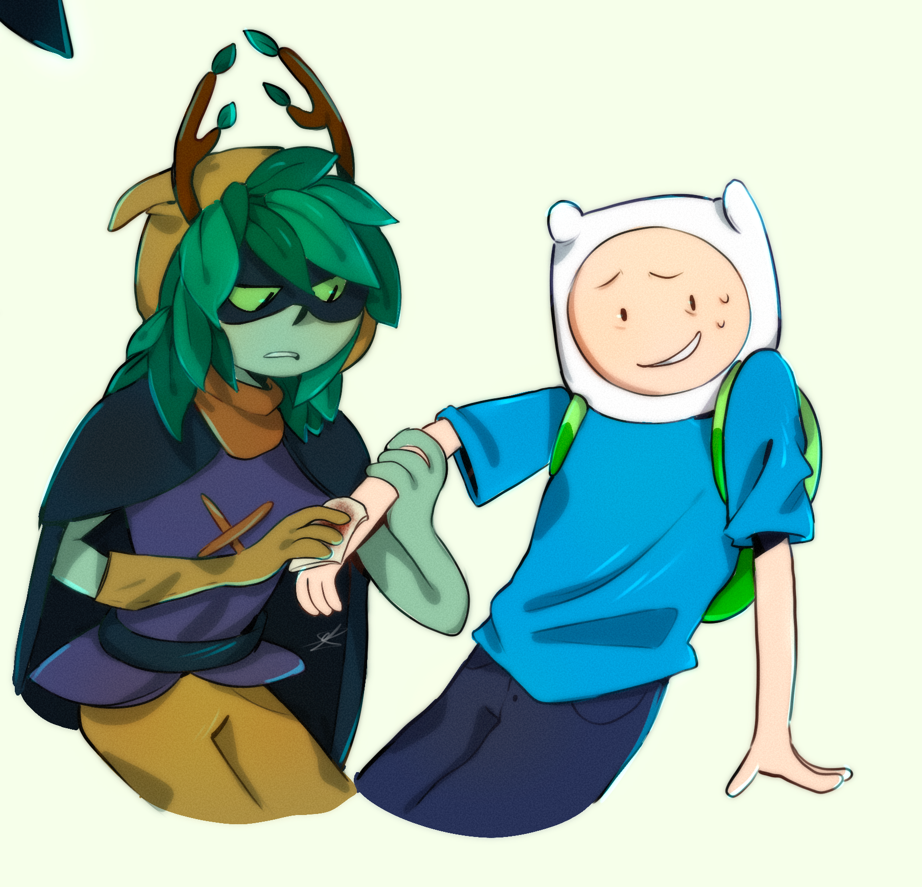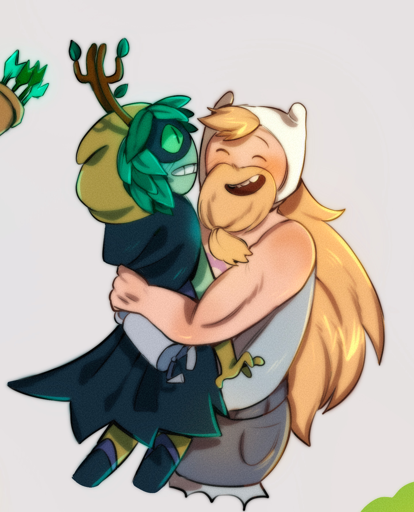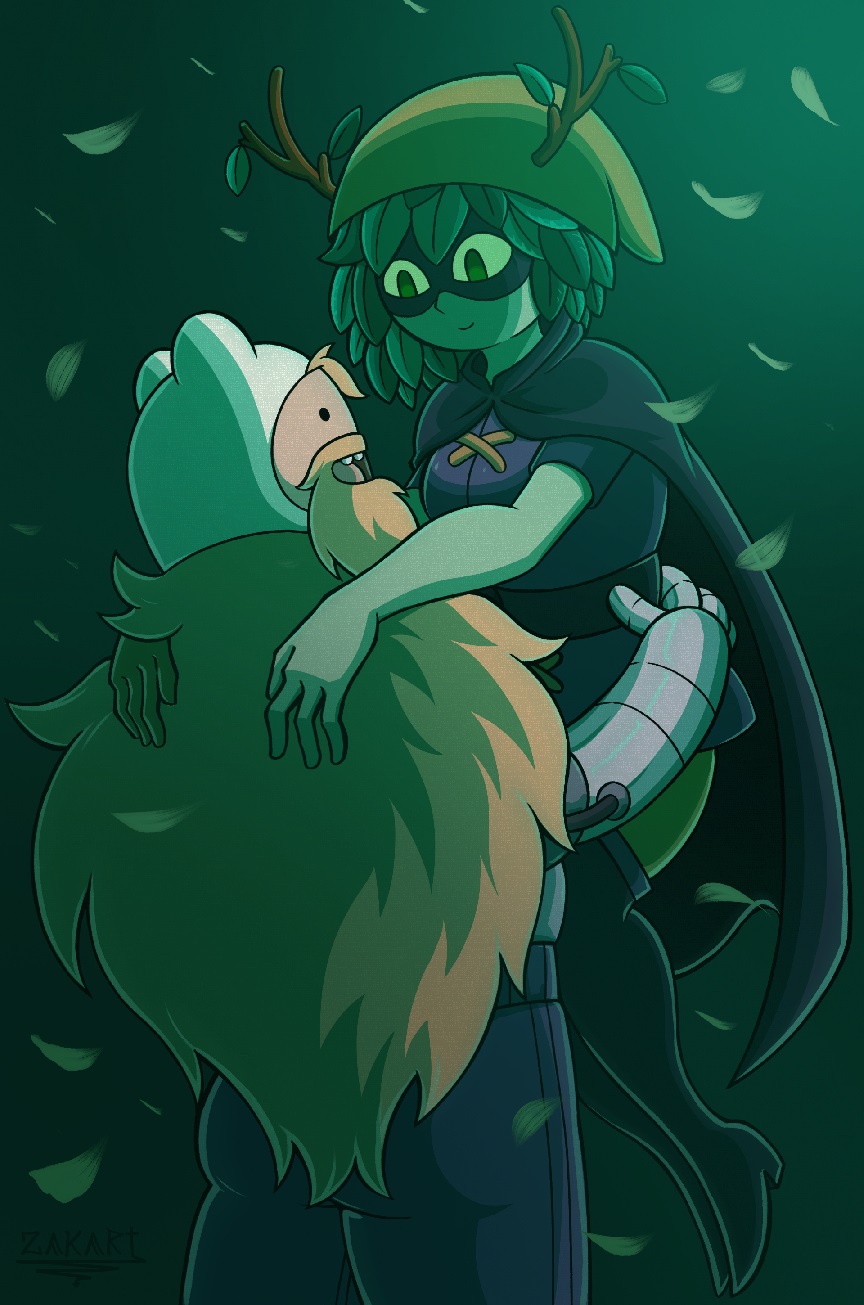 >>151723674>>151723744I like seeing all the different designs artists in a fandom will give fankids and seeing Finntress ones is especially interesting because it raises the question of what a kid between Finn and Huntress Wizard would actually look like in the show if the writers ever gave them one. Given what we know of HW per this season, that she's a humanoid plant, how would that impact any kids she and Finn might have? Would they be humans with plant features, or plants with human features? I'd be interested in seeing which depiction fan artists tend to lean in.