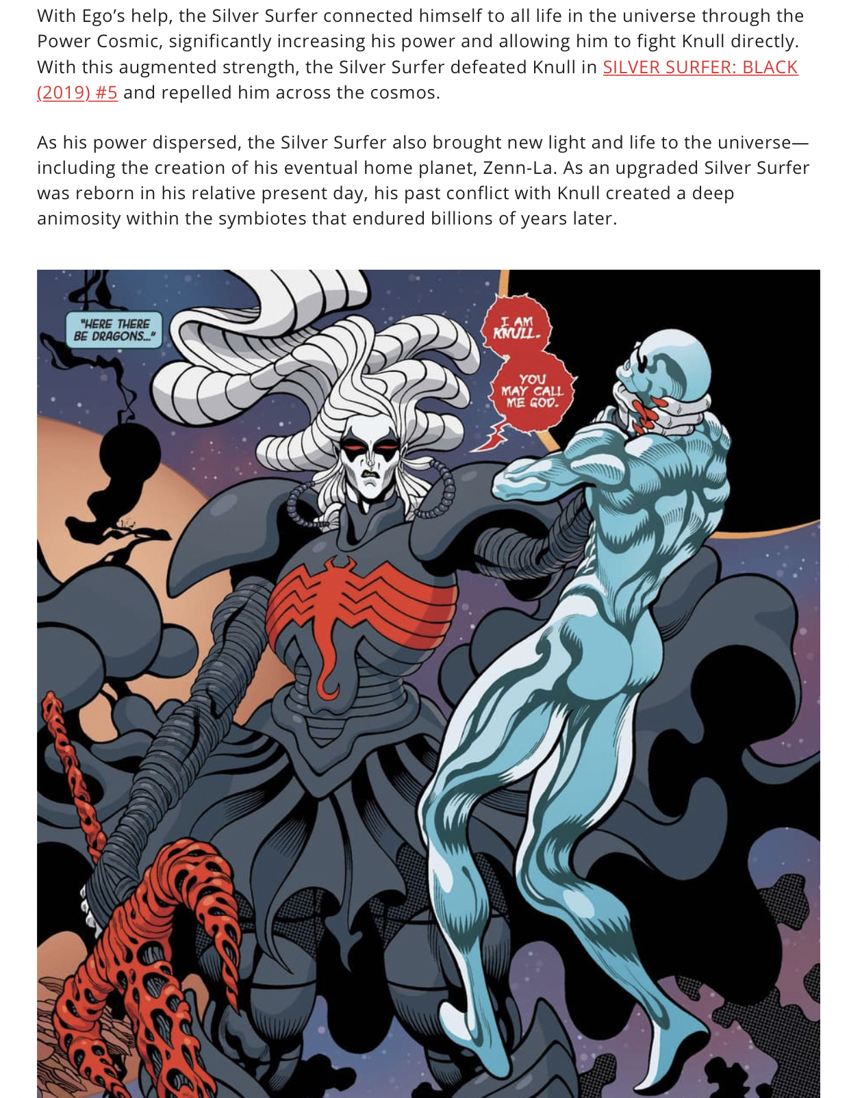 >>151727953Did an AI write that? They were fighting in a primordial universe where barely any life had formed (Galactus wasn't even awake yet). Also Norrin specifically says is final attack against Knull was using (the last of) his own power.