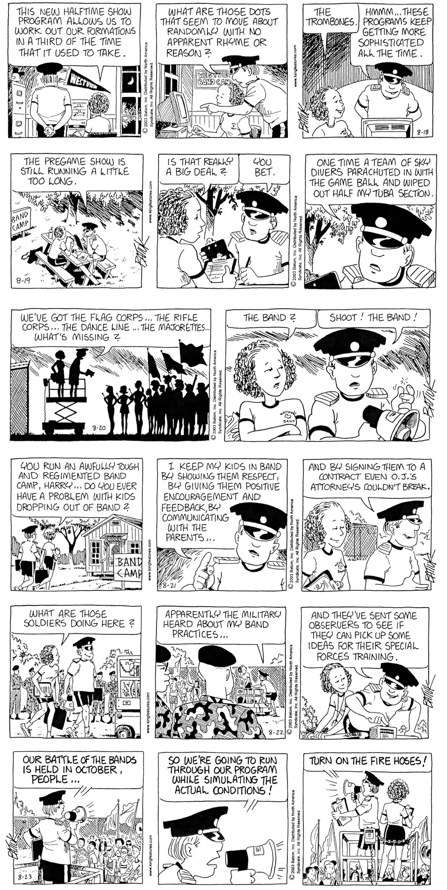 In less depressing events, the Eliminator returned to challenge Crazy Harry where it was revealed that "he" was actually a woman named Donna. This led to Crazy and Donna dating and, after a mishap with the engagement ring, marrying by the end of 2002. Dinkle, now getting older and having more responsibilities, decided he needed an assistant band director, a position that was filled by recen college graduate Kara Milstrom.