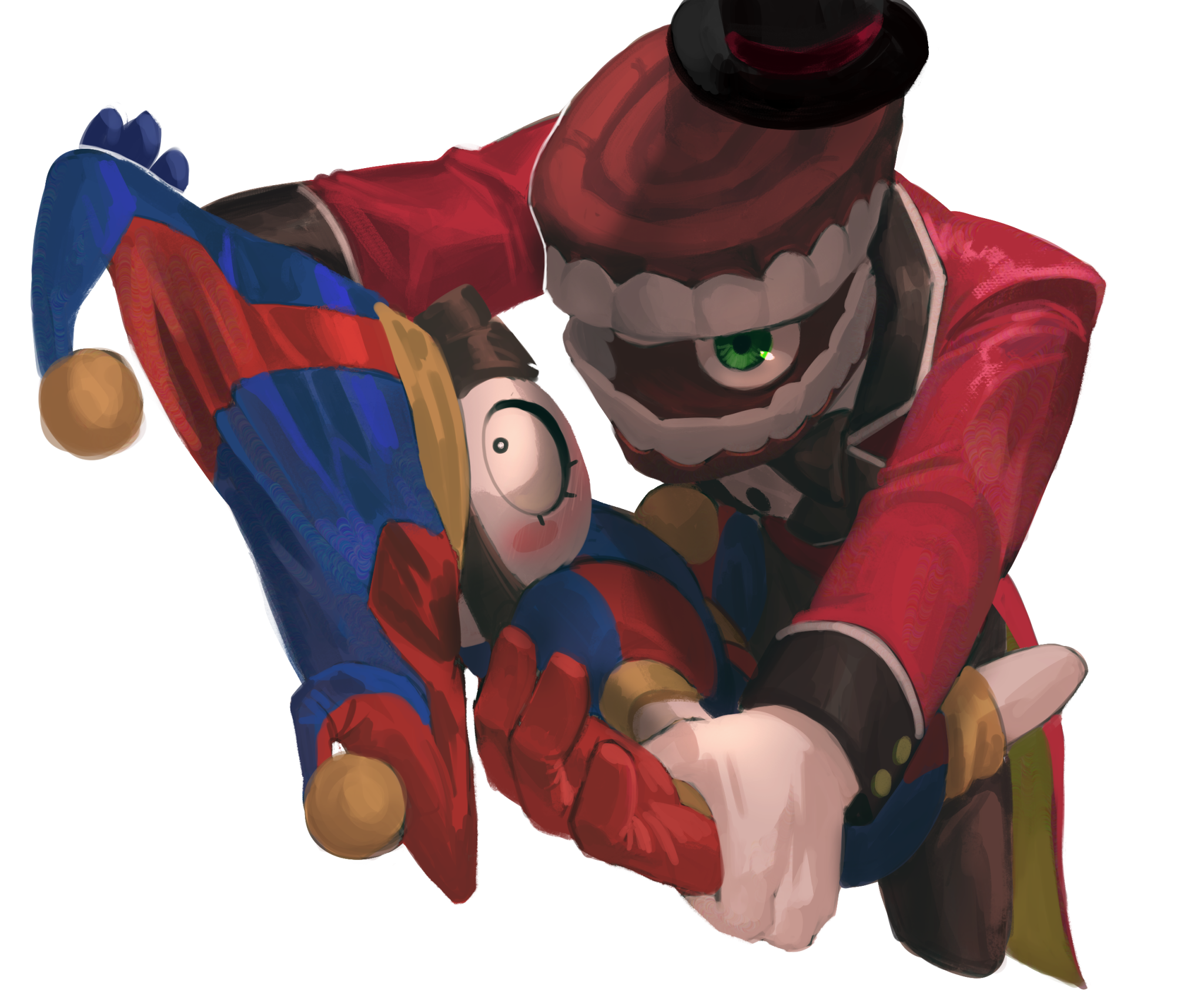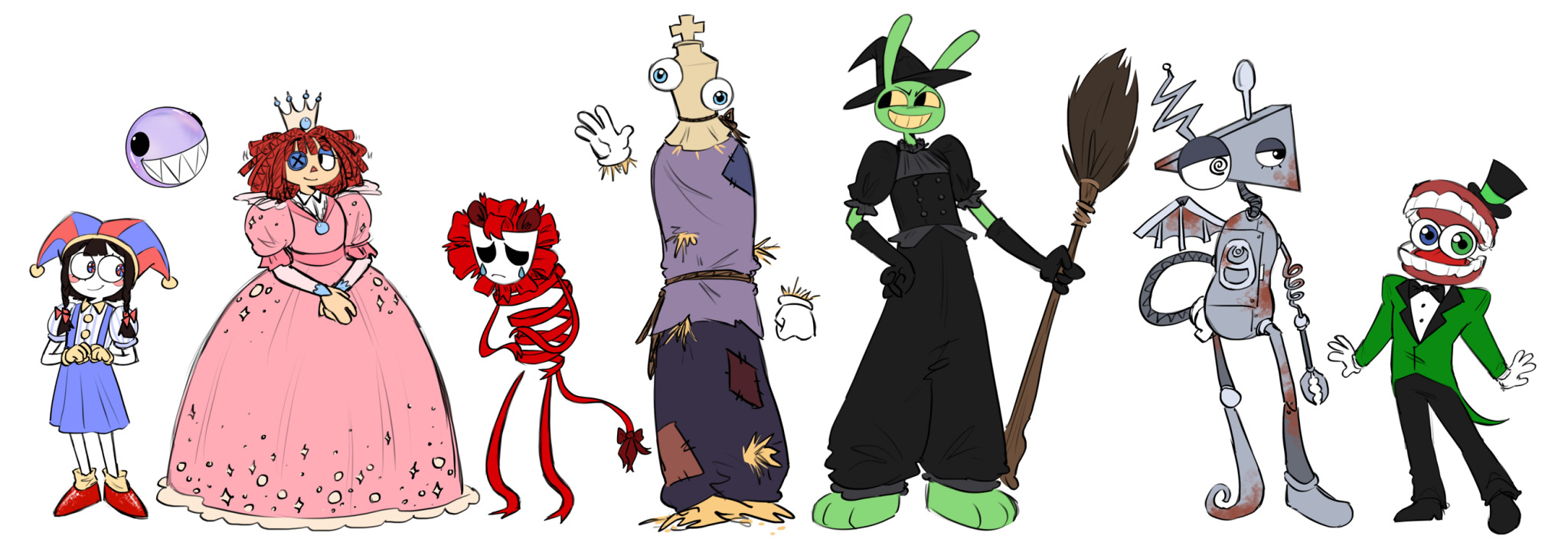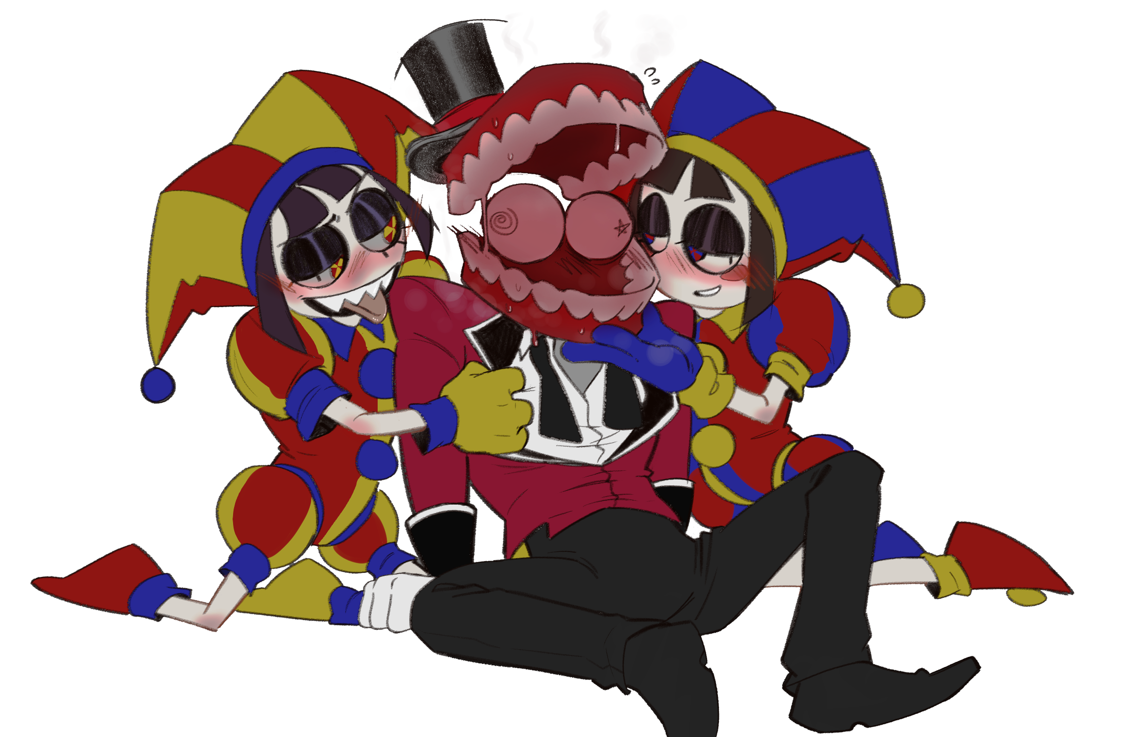 >>151739882Can two people pleasers make each other happy? I think Ragatha would like the attention but I’m not sure if Caine has the emotional intelligence to give her what she needs in her dolly heart.I think Ragatha could make Caine happy though. She’s willing to have tea parties with people she thinks aren’t real, and Caine just wants someone to be nice to him (Ragatha’s specialty).Although, her biggest barrier will be what the others think about her, everyone else would have to be okay with it for her to be okay with it.
