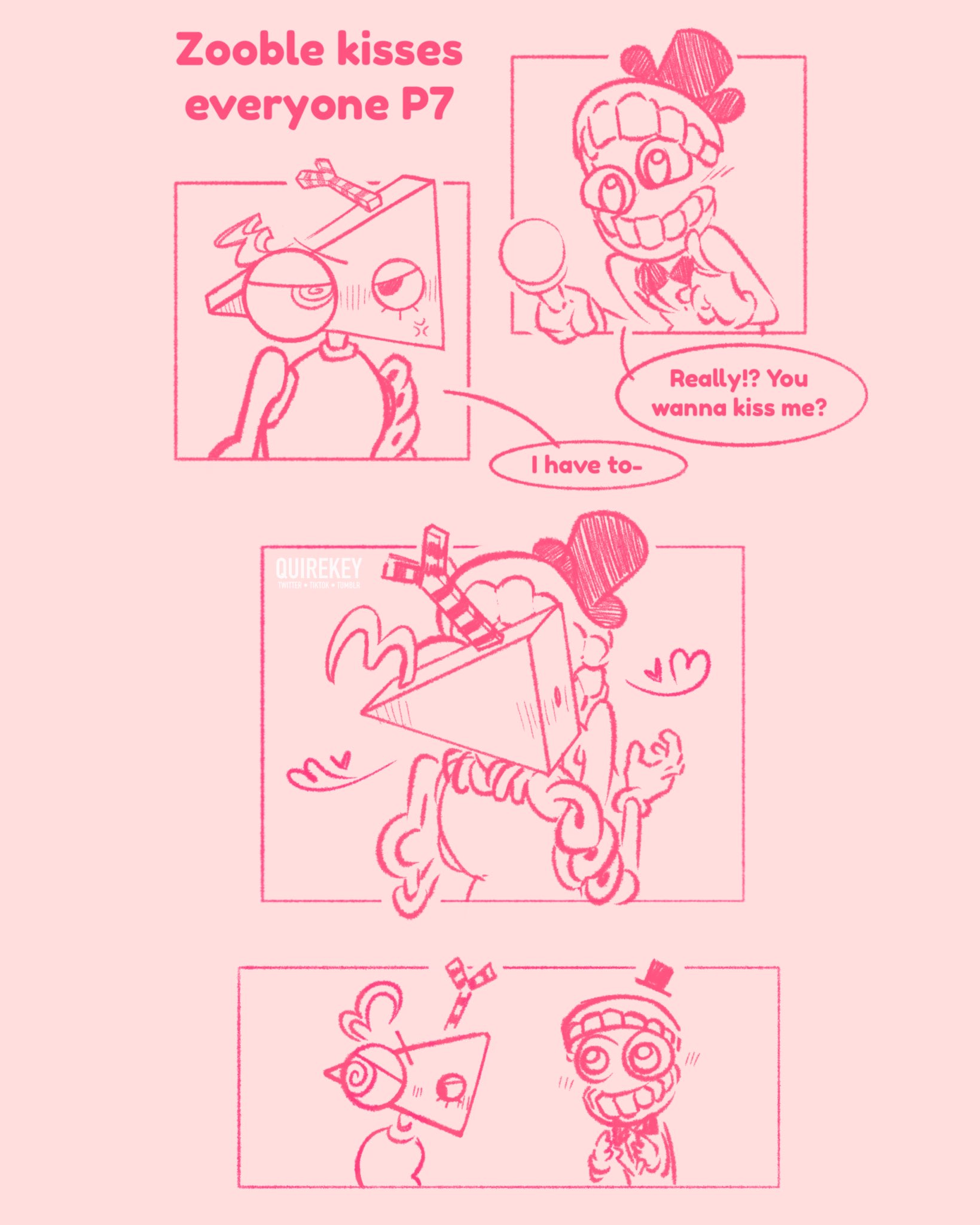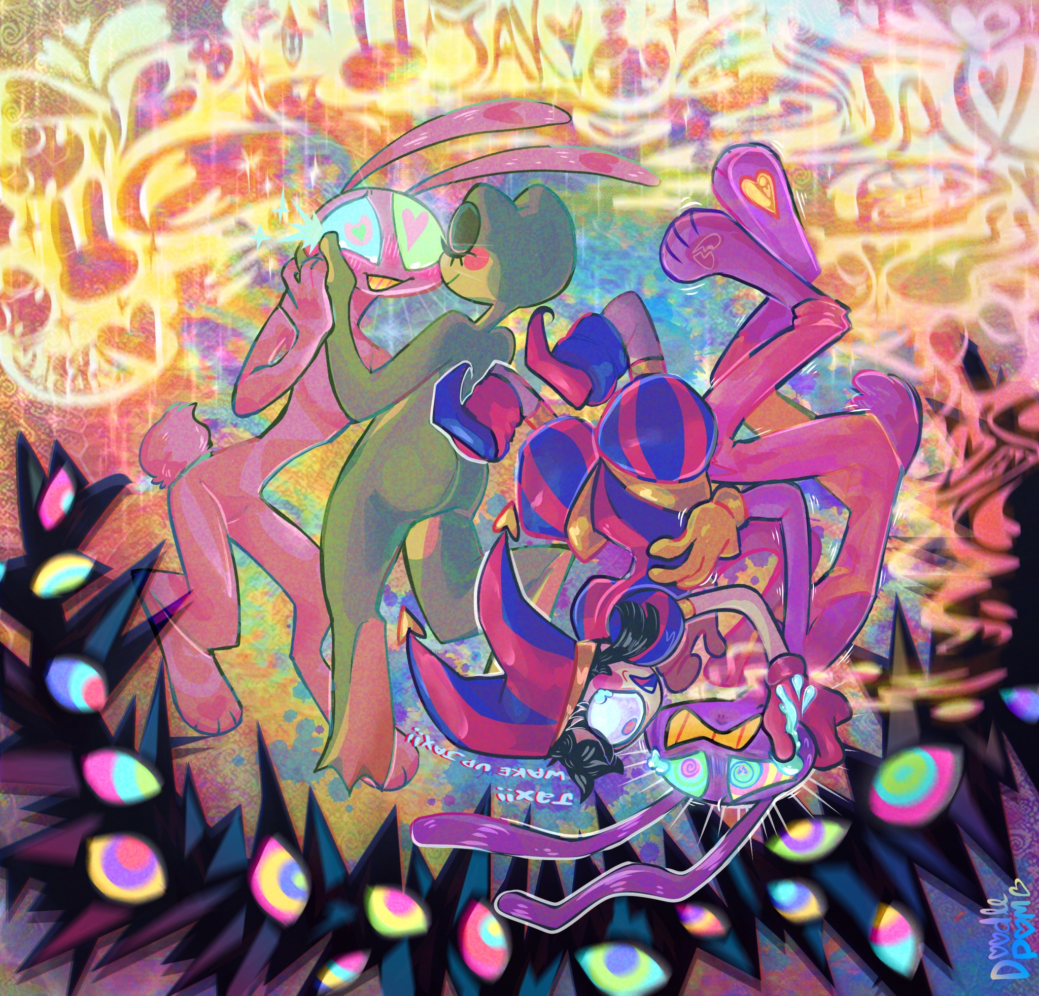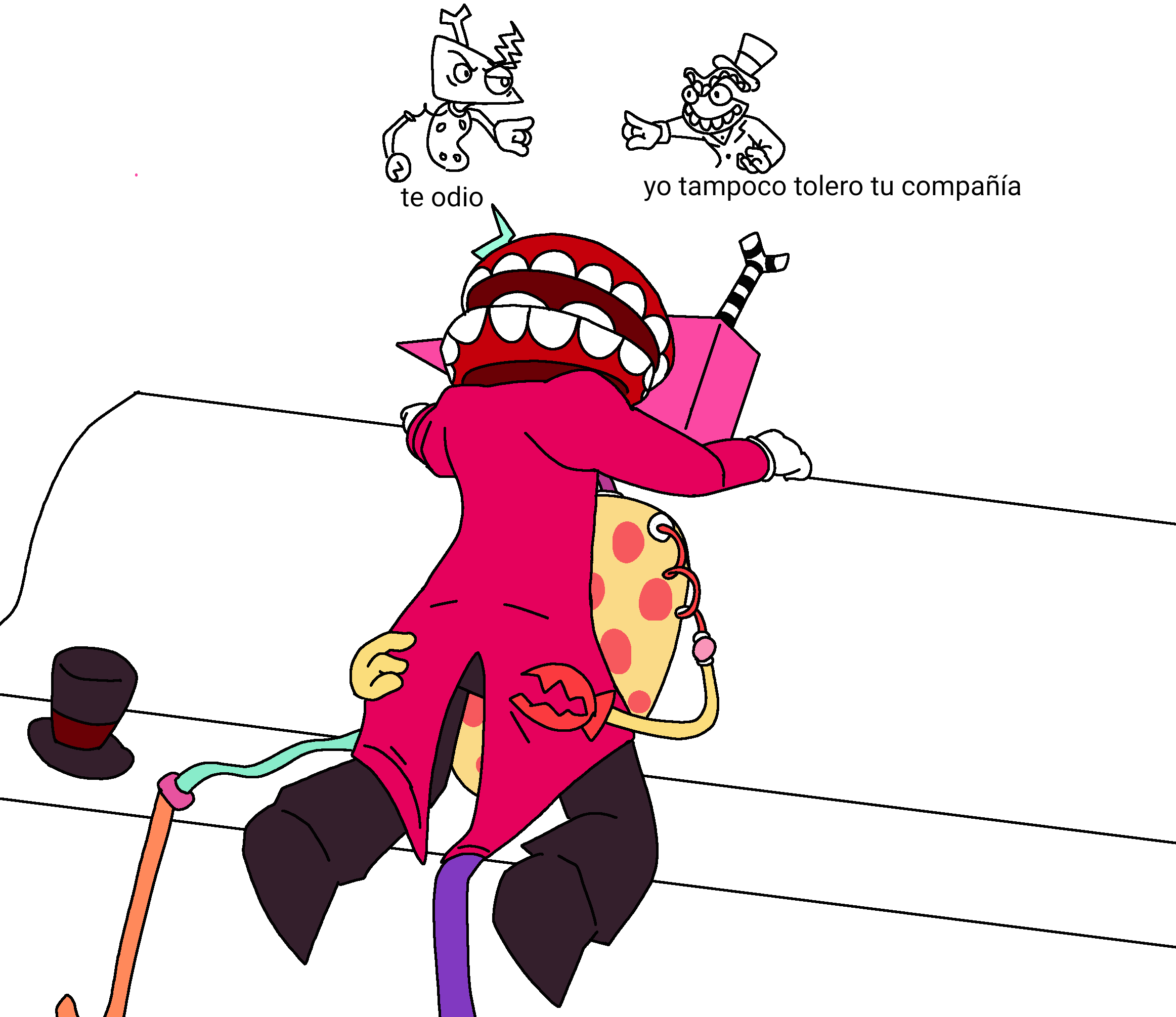 >>151739882Can two people pleasers make each other happy? I think Ragatha would like the attention but I’m not sure if Caine has the emotional intelligence to give her what she needs in her dolly heart.I think Ragatha could make Caine happy though. She’s willing to have tea parties with people she thinks aren’t real, and Caine just wants someone to be nice to him (Ragatha’s specialty).Although, her biggest barrier will be what the others think about her, everyone else would have to be okay with it for her to be okay with it.