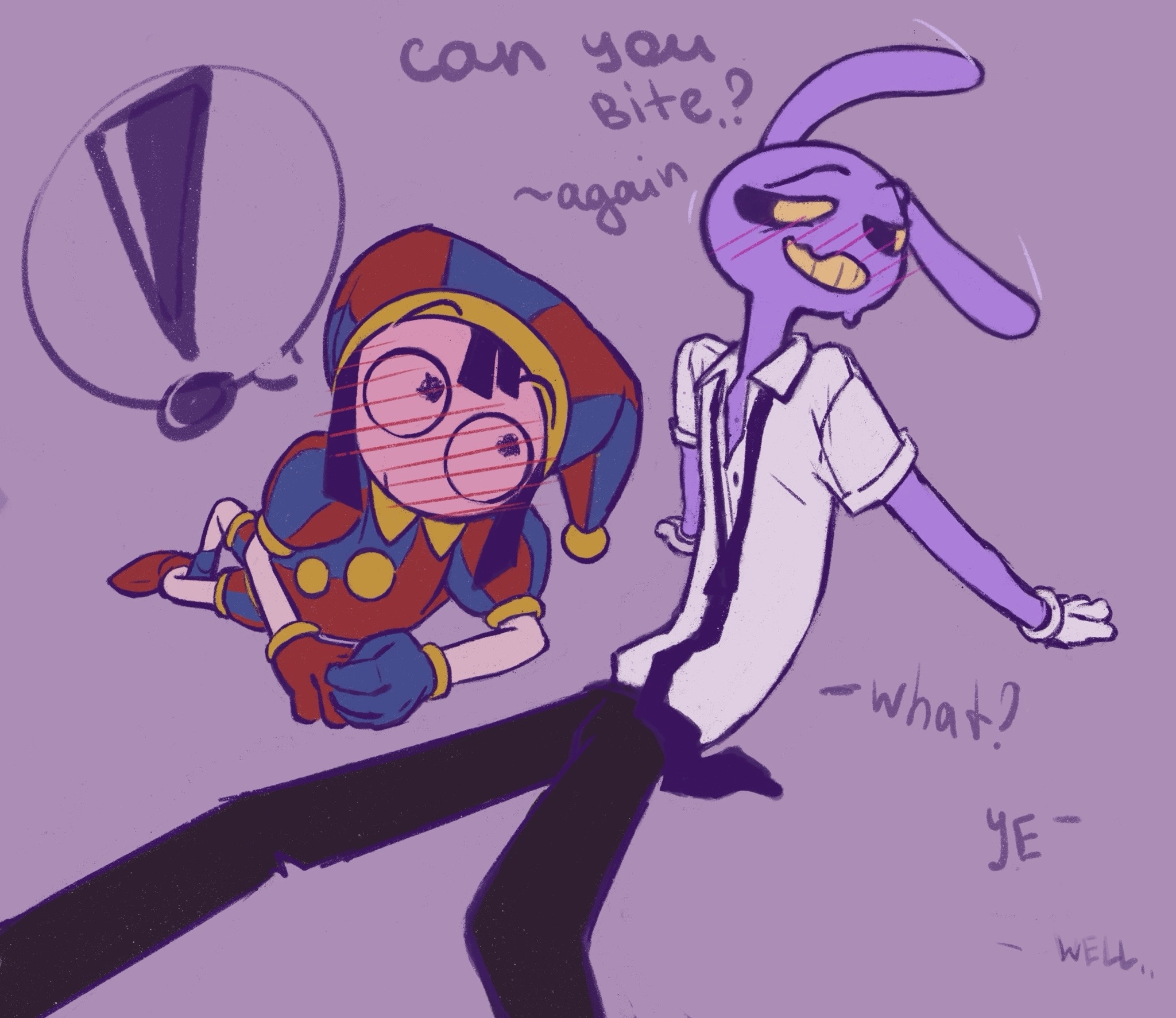>>151739806With the way Pomni balled up her fists she'd probably pounce on Caine out of rage the chance she gets like with Jax. I have an old image of Pomni trying to strangle Caine but he has no neck. I have too many images to find it at the moment.