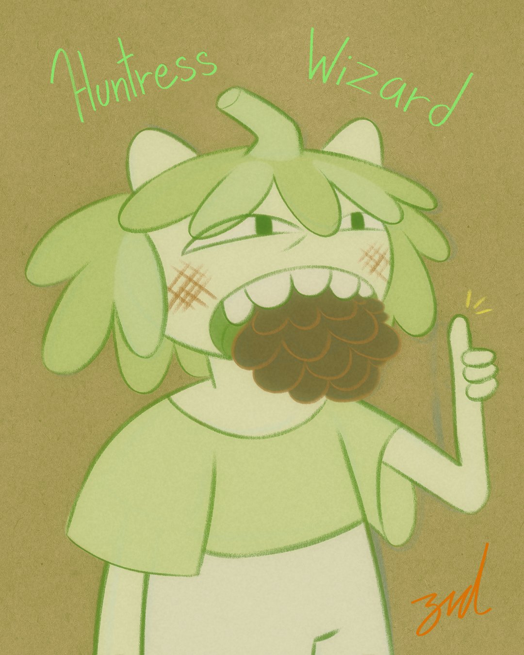 >>151754014Considering how old this is, that's probably PB as a Huntress, but looking at it in a modern context, I'd rather interpret her as HW as a Gum Person.I do wonder why the artist decided to swap PB and HW tho.