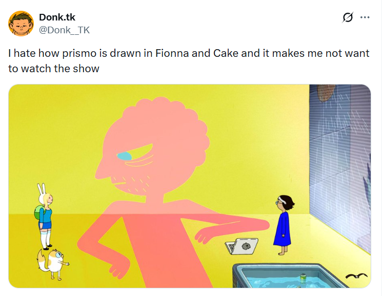 Can't wait for 10 more minutes of fionna sobbing and shitting herself, 5 minutes of cutesy gay pupperinos doing non-threatening, safe gay stuff and maybe a few scenes of Cake that I will skip without missing anything of value.