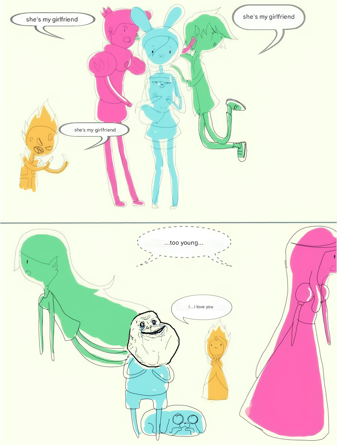 >bubbline/garyXmarsh has a ton of moments>literally no one cares>a few scenes of Finn and Huntress usually having an akward moment>goes viralThe writers really don't know what the people want. Evidence by all the townie shit