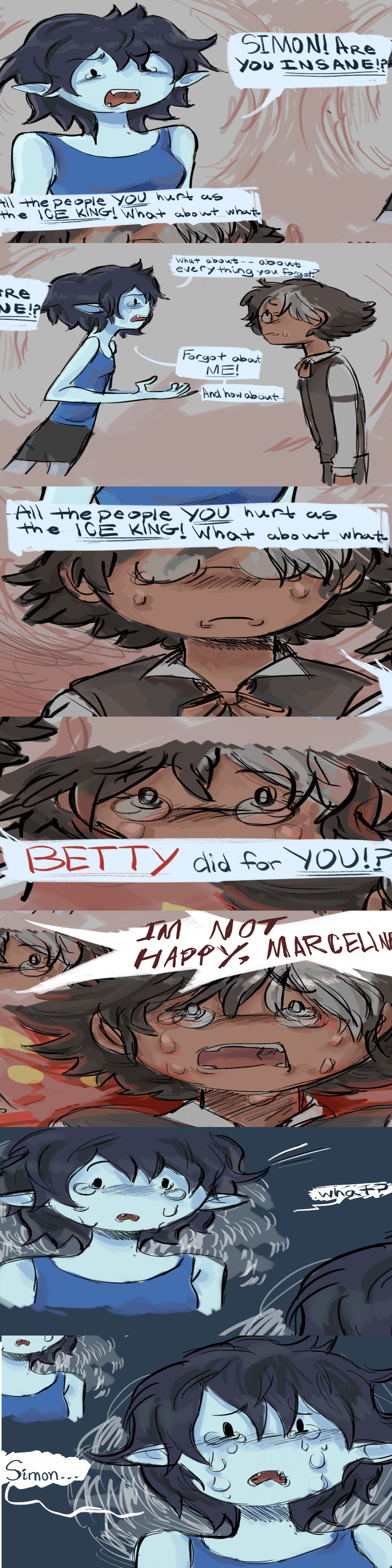 >>151752483iceKing/Simon kidnapped princesses cause Betty was his "princess". AFAIK, we haven't seen the Fionna-world r63 Betty (Bret?). Simmone seems like a spinster femcel cat-lady type. It might have been too traumatic for Ice King to write a gender-swapped version of Betty into his fanfiction, but Ice Queen still mimicked Ice King's behavior in kidnapping royals.