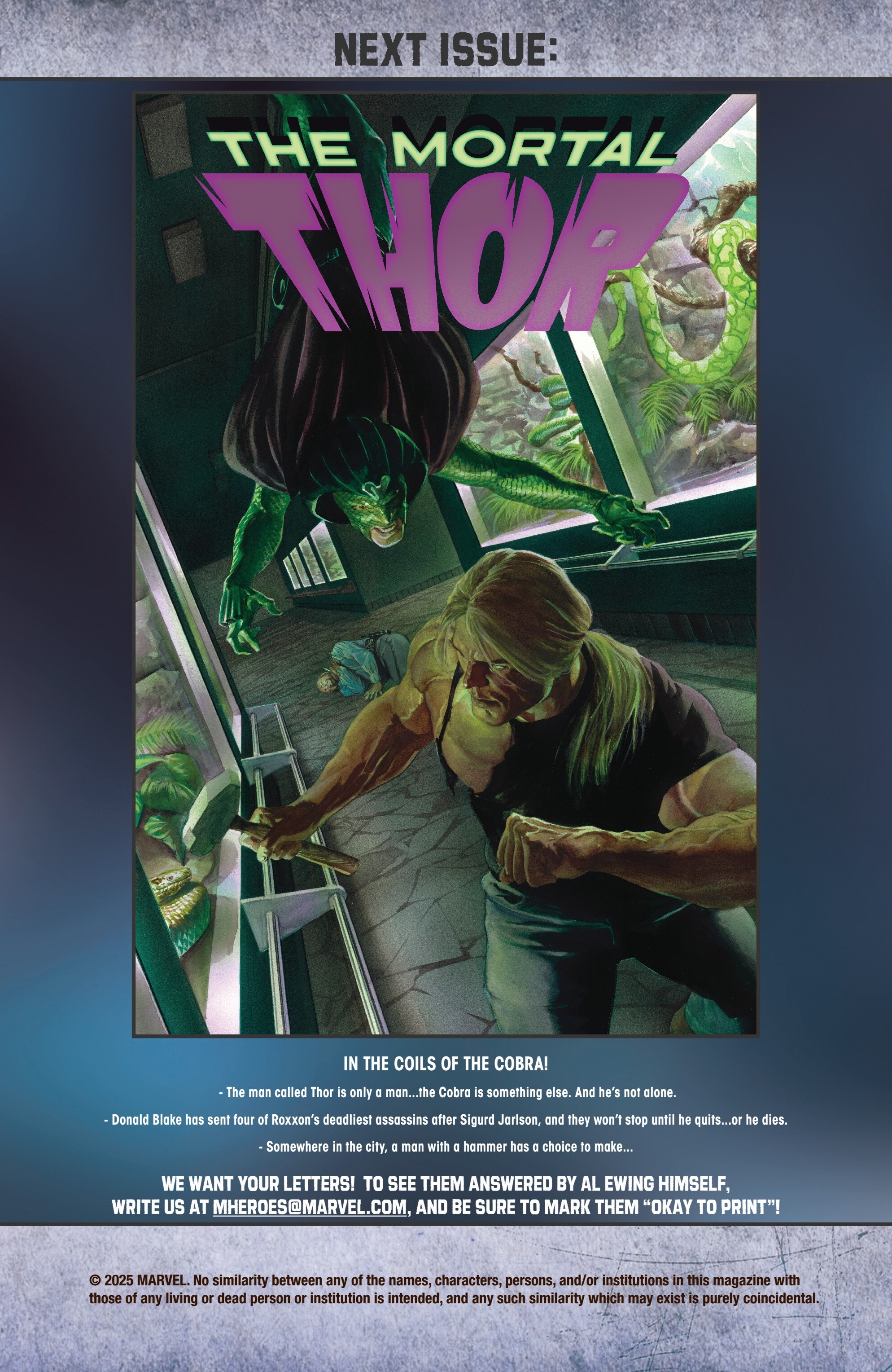 >The Sons of the Serpent want the man called Thor dead. And they have a name: Sigurd Jarlson. But the man called Thor has a name too...the name of their leader. And that name...is Blake.>Somewhere in the city, a man with a hammer faces his enemy...