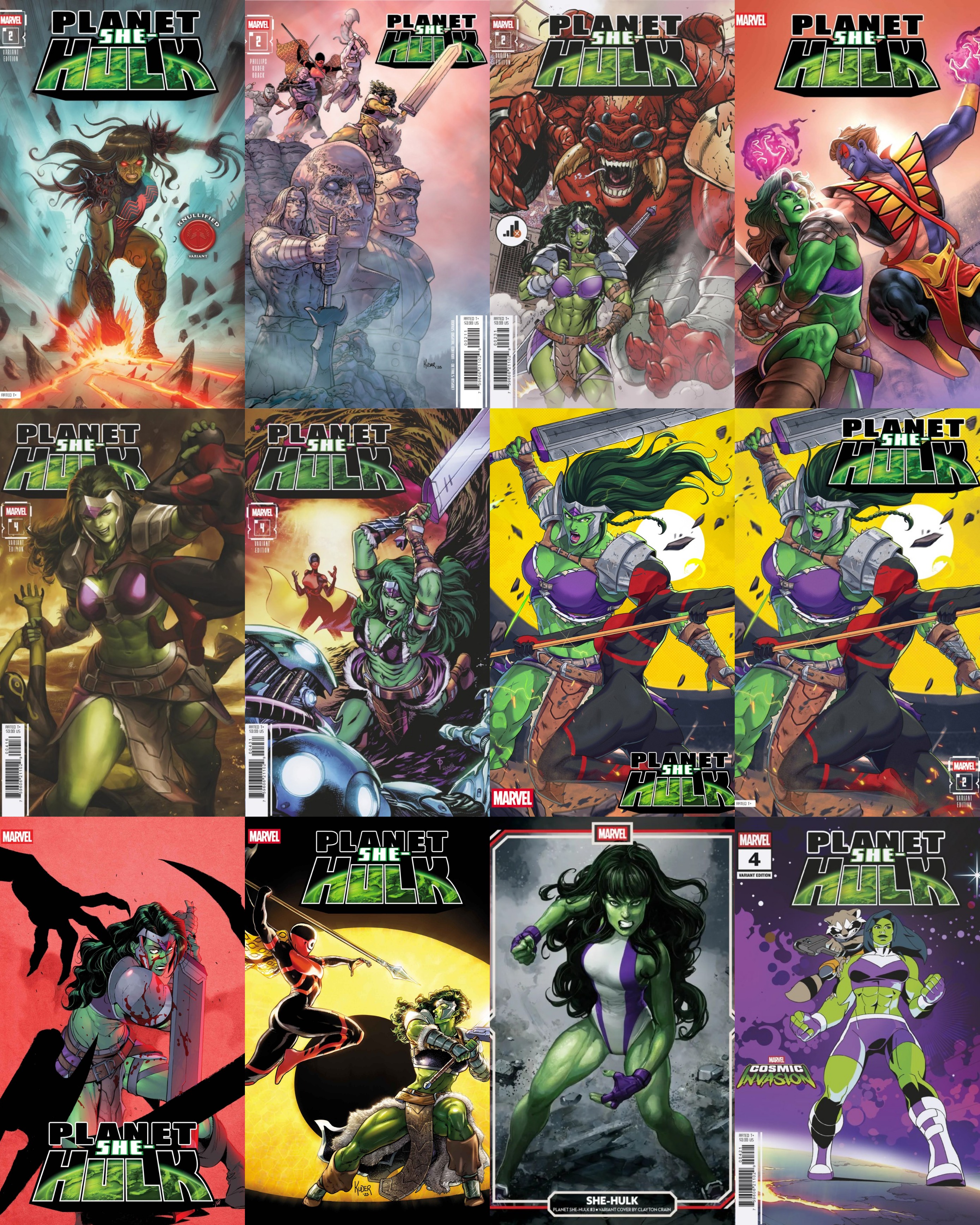 >>151755331some she-hulk covesPlanet She-Hulk #2 Lelio Bonaccorso Knullified VariantPlanet She-Hulk #2 Paco Medina Disney Stitch Unleash the Holidays VariantPlanet She-Hulk #2 Tim Seeley VariantPlanet She-Hulk #2 1:25 Jhony Caballero VariantPlanet She-Hulk #3 Clayton Crain VariantPlanet She-Hulk #3 Paco Medina VariantPlanet She-Hulk #3 1:25 Jacopo Camagni VariantPlanet She-Hulk #3 1:50 Clayton Crain Virgin VariantDEADLIEST THERE IS? A merchant's trusted assistant is dead, and Jen has been framed for his murder! Can Sakaar's justice system prevail, or is Jen staring at a long-term sentence?Planet She-Hulk #4 Marcus To VariantPlanet She-Hulk #4 Marvel Cosmic Invasion VariantPlanet She-Hulk #4 1:25 Ejikure VariantYOU DON'T KNOW JACK! How can this be?!? When last we saw Jack of Hearts, he and She-Hulk were lovers! Why, now, do we find them on a distant planet locked in battle to the death?!? The planet Sakaar really can change a person... Join She-Hulk as she tries to beat back her own past to keep the present of the planet safe!