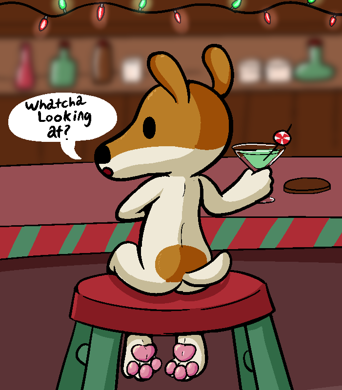 >>151767046Sitting in a north pole bar, maybe with deer friends (off-screen for easy mode), having a drink (perhaps non-alcoholic)
