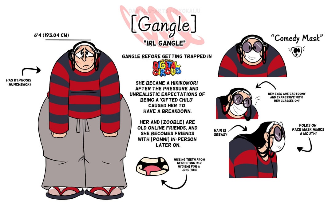 >>151780175>Only manager Gangle is annoying.I liked the parallel between Gangle being upset by being told she's annoying as a manager despite believing she's good at it (and probably is from a corporate perspective) and Caine not being able to process possibly being bad at the one thing he thinks he's good at. But yeah Real Gangle without the mask is actually pretty cool while Masking Gangle ends up being kind of a dick just to live up to expectations of the mask/uniform. >And I still don't get why she hesitated pressing the blue buttonAbel was being super cryptic the whole time and she wanted to wait for Kinger. Her not pressing it makes sense it's just annoying in EP7 because she's constantly being weird and not talking openly when she has no reason not to. Like not telling Ragatha that Abel said something weird to her when Ragatha said she got worried and the fact that both just like 20 minutes ago had a conversation about how Kinger definitely knows more than he lets on.
