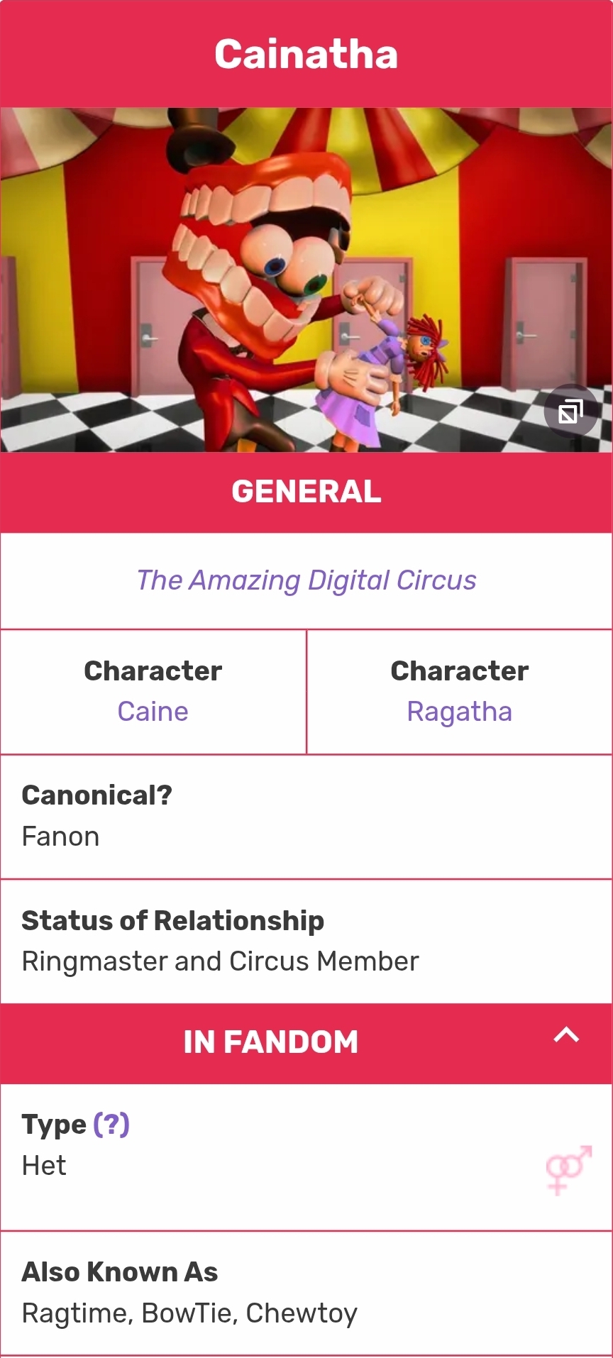 >>151782964it wouldn't. probably. whatever the ship name for Ragatha and Jax would be most popular probably. People love enemies to lovers and toxic doomed yuri