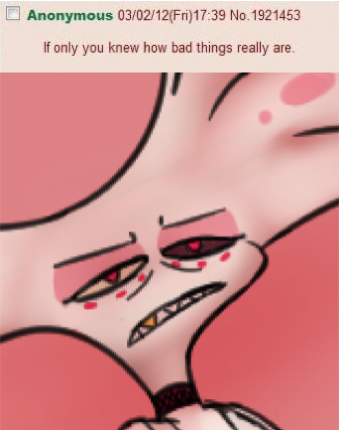 >>151779281There is a certain degree of body horror that hasn’t really been addressed in the series. Imagine dying as a human and then waking up with a tv head and claws in hell. Or as a flying fur covered bipedal cat thing like Husk. Newcomers to hell must have some serious mental issues.