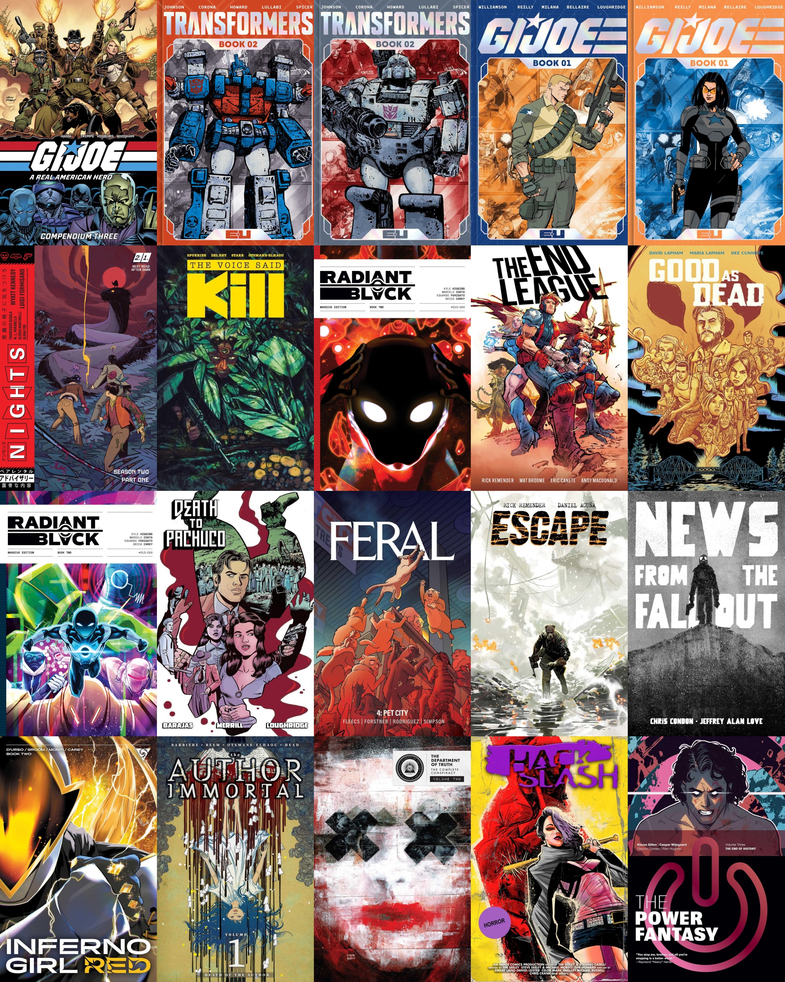 >Image Comics collections - March 2026The Author Immortal Vol. 1: Death of the Author TPDeadly Tales of the Gunslinger Spawn Vol. 1 TPDeath to Pachuco TPThe Department of Truth: The Complete Conspiracy Deluxe Vol. 2 HCThe End League Complete Collection TPEscape Vol. 1 TPExquisite Corpses Vol. 2 TPFeral Vol. 4: Pet City TPG.I. Joe Deluxe Edition Book 1 HCG.I. Joe: A Real American Hero Compendium Vol. 3 TPKing Spawn Vol. 7 TPNights Vol. 3 TPThe Power Fantasy Vol. 3: The End of History TPThe Voice Said Kill TPRadiant Black Massive Edition Book 2 HCTransformers Deluxe Edition Book 2 HCNews from the Fallout TPInferno Girl Red Book 2 TPHack / Slash: Deluxe Edition Vol. 6 HCGood as Dead TP>source:https://www.comicreleases.com/solicitations/https://aiptcomics.com/2025/12/19/full-march-2026-image-comics-solicitations/
