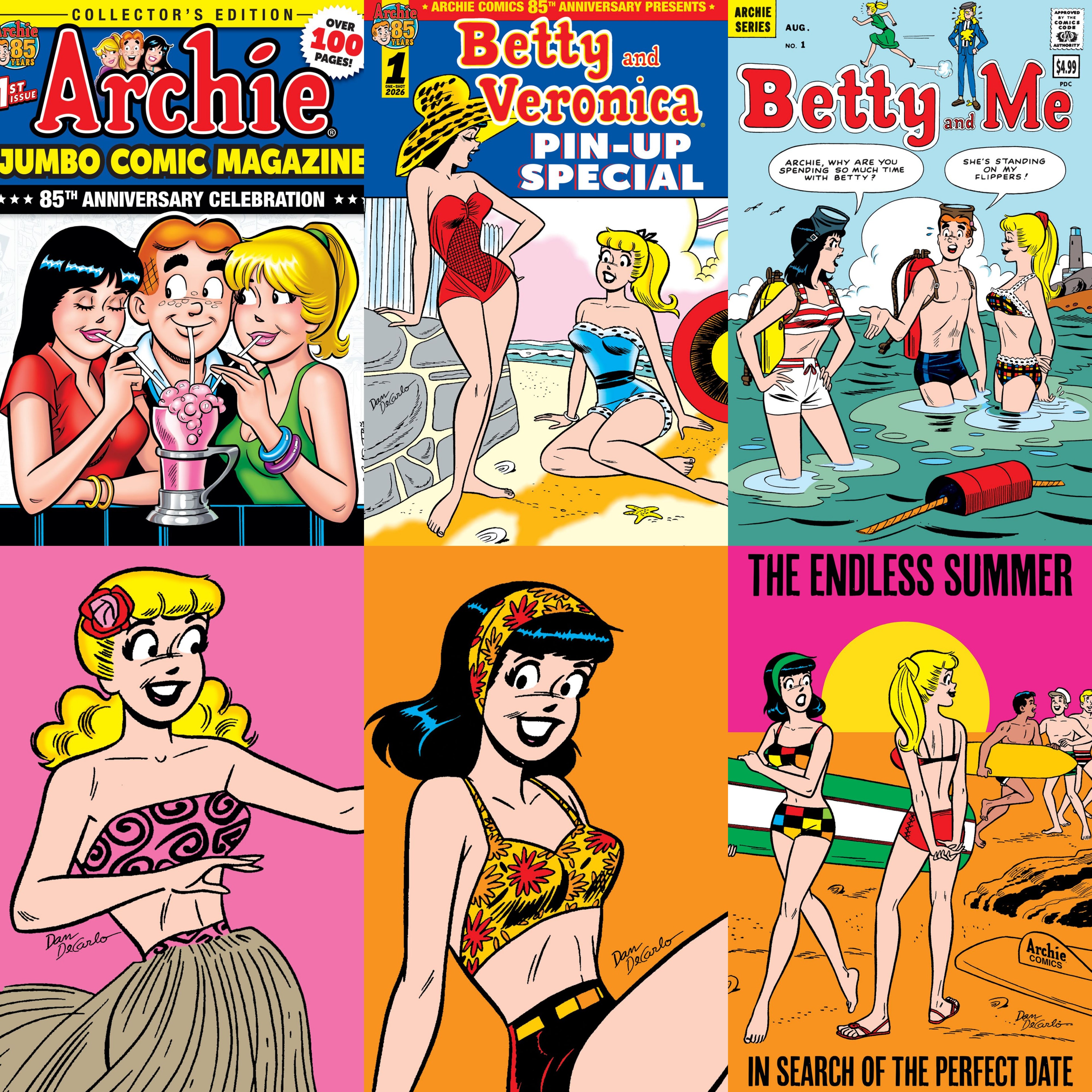 also archie comics solicits (with now has a partner ship with onipress)March 2026ARCHIE JUMBO COMIC MAGAZINE: 85th ANNIVERSARY CELEBRATIONAnd now for something completely different! Archie Comics is proud to present a JUMBO-SIZED MAGAZINE celebrating 85 years of heart, humor, and hijinks! This must-have magazine will collect some of the most important (and hilarious!) stories in Archie's history, featuring your favorite characters from the worlds of Archie, Sabrina, Josie & the Pussycats, and more! This is a collector's edition you can't miss!Cover: Dan DeCarlo, Rosario "Tito" Peña112-page, full color magazine$14.99 U.S.ARCHIE COMICS 85TH ANNIVERSARY PRESENTS: BETTY & VERONICA PIN-UP SPECIAL (ONE-SHOT)Archie Comics is celebrating our milestone 85th Anniverary all year long with a variety of rarities, collector editions, and fun finds! We're kicking things off with a special collection of some of the best and most gorgeous Betty and Veronica Pin-up pages, collected for the first time ever in a comic-size format! This is an absolute must for any collector!MAIN COVER: Dan DeCarloOPEN-TO-ORDER VARIANT COVERS: Dan DeCarlo (Betty Variant), Dan DeCarlo (Veronica Variant)OPEN-TO-ORDER FOIL VARIANT COVERS: Dan DeCarlo (Betty Variant), Dan DeCarlo (Veronica Variant)ON SALE DATE: 3/2532-page, full color comic$4.99 U.S. (Regular Covers)$6.99 U.S. (Foil Variants)BETTY AND ME #1: FACSIMILE EDITIONKick off women's history month with this special piece of Betty Cooper history . . . that's right, the first-ever issue of BETTY AND ME from 1965! From chores and gardening to parties and beach trips, life's always a lot more fun with everyone's favorite girl-next-door, Betty Cooper! Plus, a special appearance from Li'l Jinx. All that and lots more in BETTY AND ME #1, faithfully reprinted in a full-facsimile edition!