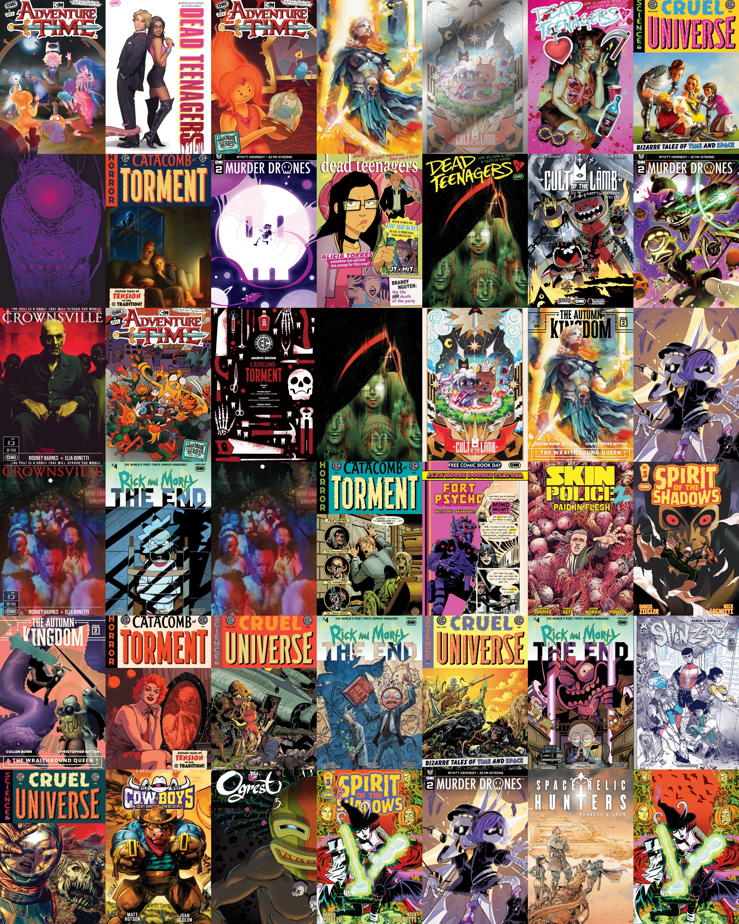 >Oni Press March 2026 SolicitationsCULT OF THE LAMB: LAST SACRAMENT SPECIAL #1 (ONE-SHOT)MURDER DRONES #2 (OF 6)DEAD TEENAGERS #1 (OF 5)MIND MGMT / FORT PSYCHO FCBD 2026 SPECIALTHE AUTUMN KINGDOM: THE WRAITHBOUND QUEEN #2 (OF 4)SPIRIT OF THE SHADOWS #3 (OF 5)EC CATACOMB OF TORMENT #9CRUEL UNIVERSE 2 #8 (OF 12)RICK AND MORTY: THE END #4 (of 6)ADVENTURE TIME #11CROWNSVILLE #5 (of 5)CRUEL UNIVERSE VOL. 2 SCWILD WEST C.O.W.-BOYS OF MOO MESA SCSKIN POLICE VOL. 2: PAID IN FLESH SCSPACE RELIC HUNTERS HCSHIN ZERO BOOK 1 SCLIVE MEMORIUM SCOGREST VOL.5 SC
