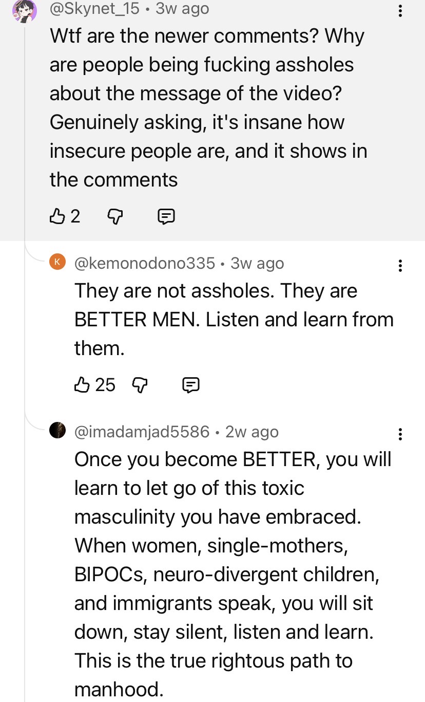 >>151821159>>151821159To be fair, a good amount of them are likely from /v/ considering the better man spam that happens there.