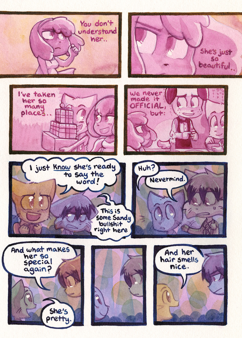 >>151829796I don't think there's more than one or two people who are deranged to this extent though, banning cross posters entirely means you lose good artists like they did to Nue, or good content like the poll, I understand why she does it I just don't agree.In other news, if there was even a glimmer of hope in your heart for something to happen kill it now.Next page is the same as today's except Jordan brings up going to burgertron >We all assumed the double date meant Mike would finally break up with Sandy >She might not even visit >Mikes status quo might stay the same until the end of the story