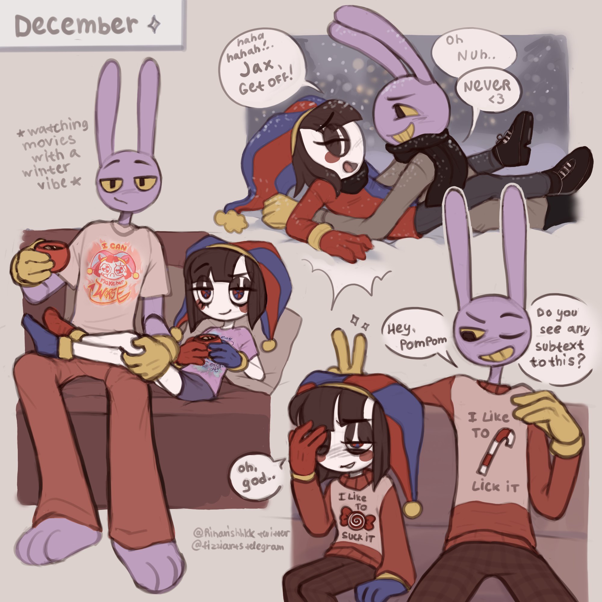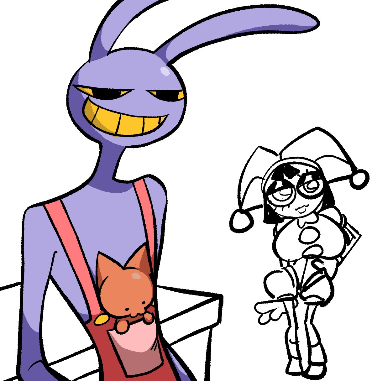 I love all het Jax pairings but specially funnybunny, even if Jax shoved a chidori into Pomni while she barely misses her rasengan like my favorite chinese cartoons nothing would change, it's a content i love to consume for fun. Shipping fuels a lot of OC and i think even Goose would be sad if people stopped making stuff because so and so isn't canon(just don't be annoying like the "Jax is trans" spammer) i never understood this rigid thinking, in any fandom.Yeah, there are the mentally ill canon police and my-headcanon-is-canon-hear-me-roar people everywhere, just ignore them when they start to screech.Thanks for listening to my TED talk.