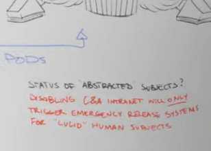 Tin foil hat theory. Kinger figured out how to escape sometime after his wife abstracted and kept that info to himself while he tries to figure out how to save her. In Abel's diagram all the text is in either black or blue (lies) except for this one bit in red (truth).