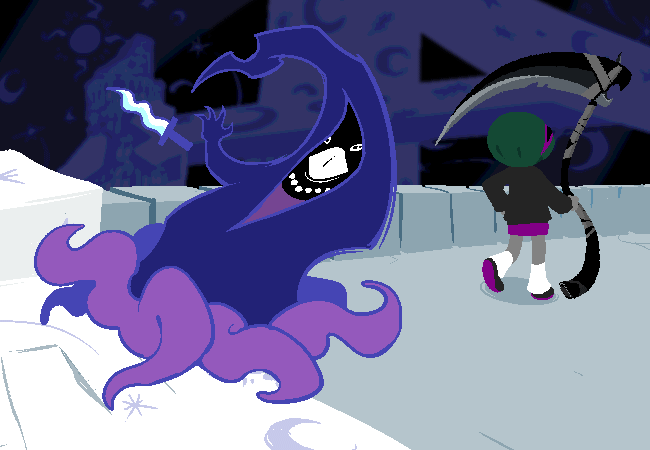 i wonder wtf this is, looks like some sort of ghost masquerading as CD and they were just in her derse dream room and suddenly the entire environment changed, kinda like an illusion being blown away or something as soon as she cut him apart