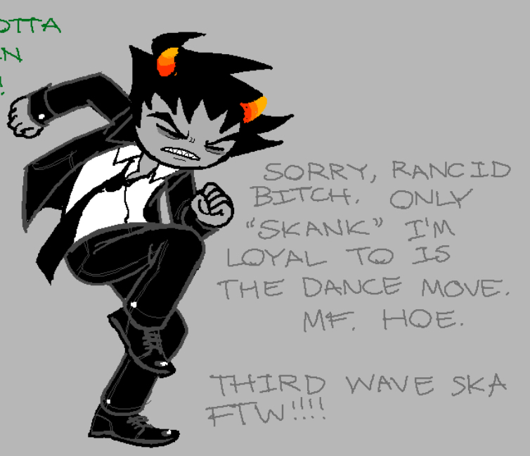 So for the last two weeks there's been this Gamzee cosplayer following me around in a lime green Chevy Equinox. Usually he just stands outside my house and stares at me holding up a fucking clown horn in his hand, but I've never heard him use it. He follows me when I drive to work or to the park or to dates I've met on Tinder, and it's been getting really fucking annoying. The cops won't do shit (I'm a miserable Detroitfag), and all my coworkers at the scrapyard won't hang out with me because they're afraid of my Gamzee stalker or whatever the fuck he thinks he is.Also, I've been getting these liquid vials in the mail labeled with astrology symbols every day for the last month. I have at least one of every symbol save for Capricorn, I don't know if it's related but the coincidences are really freaking me out. I swear I have at least ten Libra vials in the fridge, whoever faggot keeps sending me this shit must really have a thing for Terezi... or Libras in general, sometimes the color doesn't match up with the hemospecter. It's getting hard for me to sleep at night, and my roommate's already moved out because of my paranoia.Wat do, /hsg/?