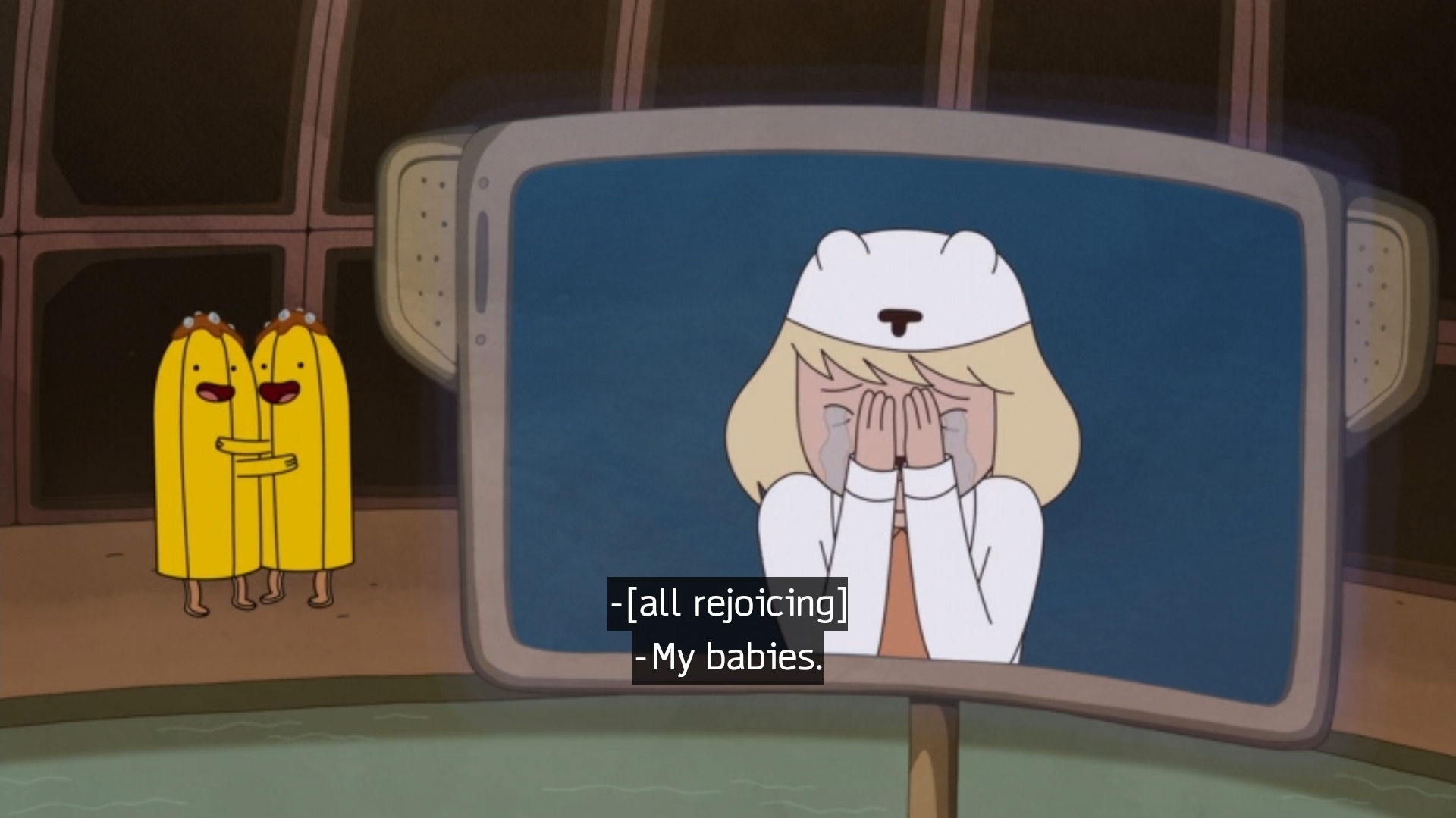 I teared up a little the finale was good and i guess as bad this season was this made up for itAlso I feel so bad for PB when Finn comes back anbd it dawns on her she nearly crushed him poor girl cares so muchalso hudson at the end??? they so getting another season because of thatalso the town is just the town! prismo didn't think of making anything else Ooo is still mostly the same he just took everyone and turned into coffeeshop au's there's probably magic everywhere they just never were able to see it because they were trapped in coffeeshopAU walls