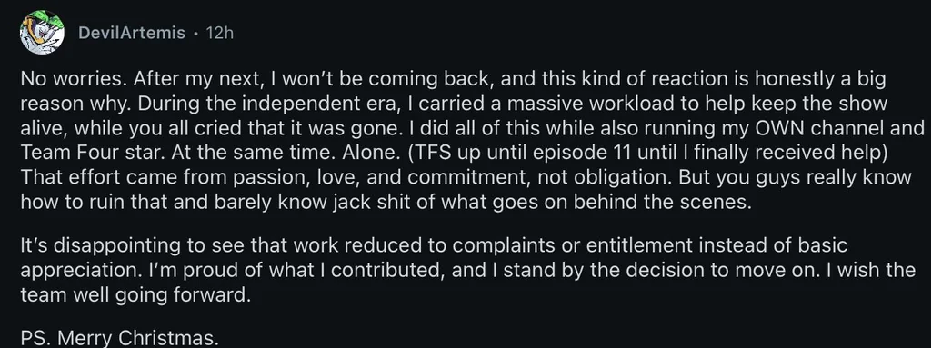 >>151878219Wasn't it planned for him to quit for a while? I think he could just couldn't handle criticism well. His recent outburst was caused by him speedreading a two sentence post expressing sympathy for his workload and lashing out at them