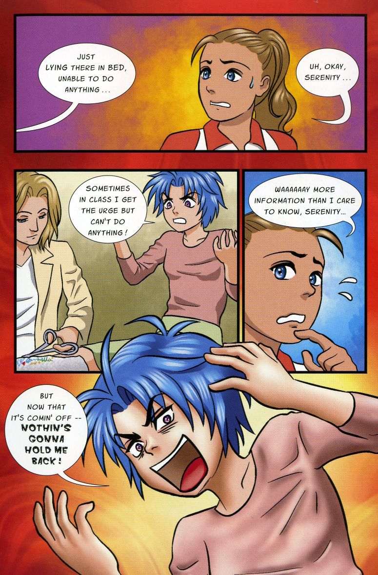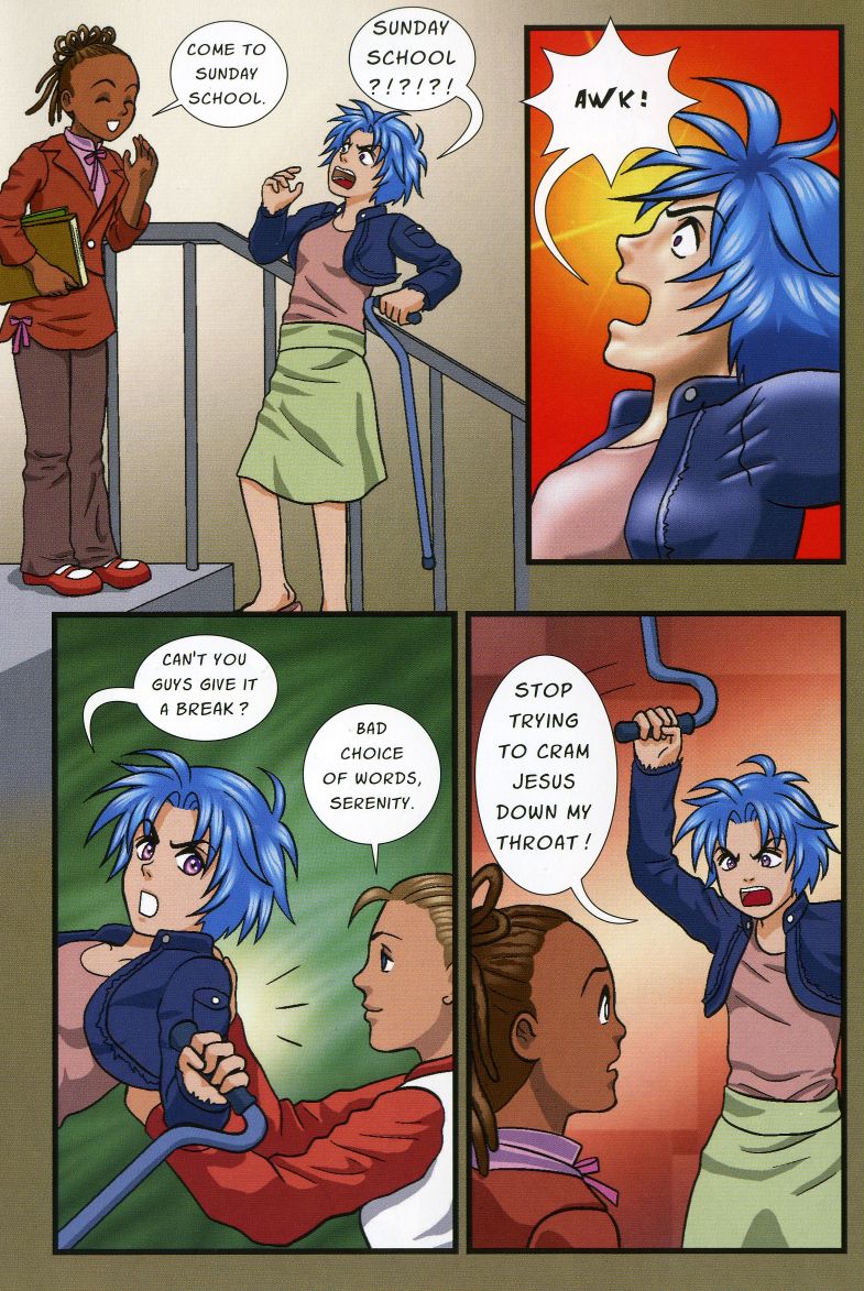 >>151882659>>151882662It's kind of interesting to think about it from Derek's POV rather than Serenity's To us, Serenity is the MC. But to Derek, he's the MC and Serenity is the spunky outsider trying to get between him and his GF. It's like an Urusei Yatsura situation.Serenity has some real force of personality going on in pages like these that we see as a little joke, but to Derek it must hit him like a brick wall.>>151882668Willybros...