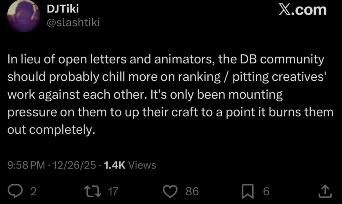 Let's call it what it is. This is what happens when people let toxicity fester, when people get way too comfortable with just being the absolute WORST person to somebody over entertainment. There is nothing wrong with criticizing episodes that DA has made WHEN it's criticism. When it's simply you expressing your opinion over the work and just leaving it there. Not to sound like a "Back in my day" type of boomer but... back in my day, I was taught a very simple lesson about criticism. The moment you veer into attacking and shaming the people behind this work? You have voided the criticism and lose your seat at the discourse table. The point of criticism is to focus on the art and the results of it. You can be incredibly harsh and brutal if you so choose but with that comes tact, comes a great deal of skill. To be brutally honest isn't to just scream that something sucks, it's to just be direct with your thoughts. Case in point, saying an episode sucks is brutal honesty. To pin all the blame on the animator is just cruelty.