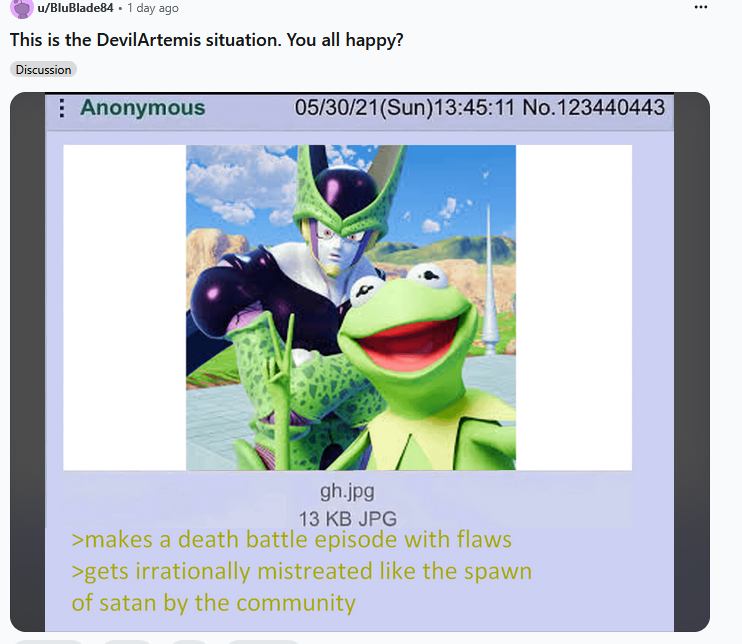 >>151885843Hey DevilArtemis or one of the Death battle discord user, I am better than you