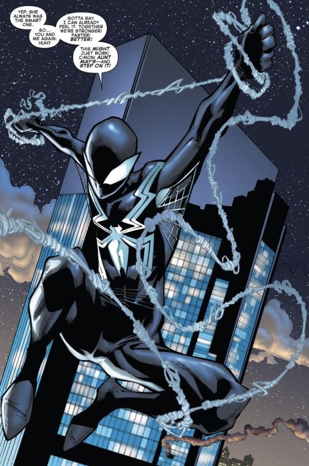 >>151891853>The symbiote brings out Ditko PeterI kinda like that. I think Spectacular did a perfect job of the “slow takeover” approach like with how the suit evolved over time. And I just gave the game shit but I liked that the Insomniac devs did that too. And the original black suit, yeah, is perfection but I just like the novelty of a new spin. I’m hoping the MCU will give him the classic suit (with the webs coming out of the hand patches I’ve always thought that was cool). I’m a big fan of the armpit webs too so it on the black suit is cool. And I’ve always had a soft spot for Humberto Ramo’s art, I can’t explain but when it’s good it’s goodAlso, most importantly, that is the cutest girl Venom design I’ve ever seen. 10/10 need comics of her being Peter’s goofy and slightly overbearing gf