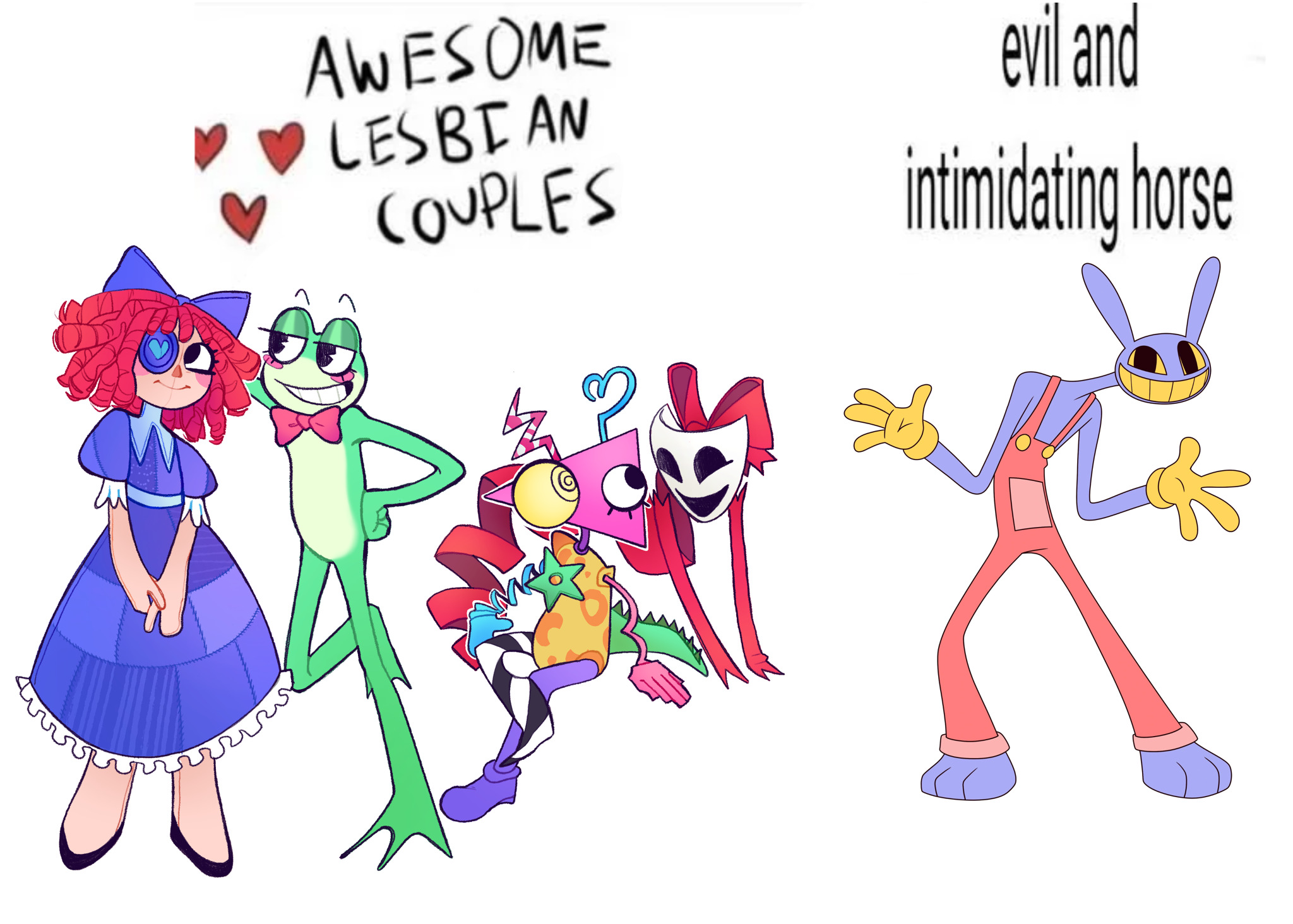 Jax is cute. Pomni is cute. Ragatha is cute. Kinger is cute. Gangle is cute. Caine is cute. Bubble is cute.