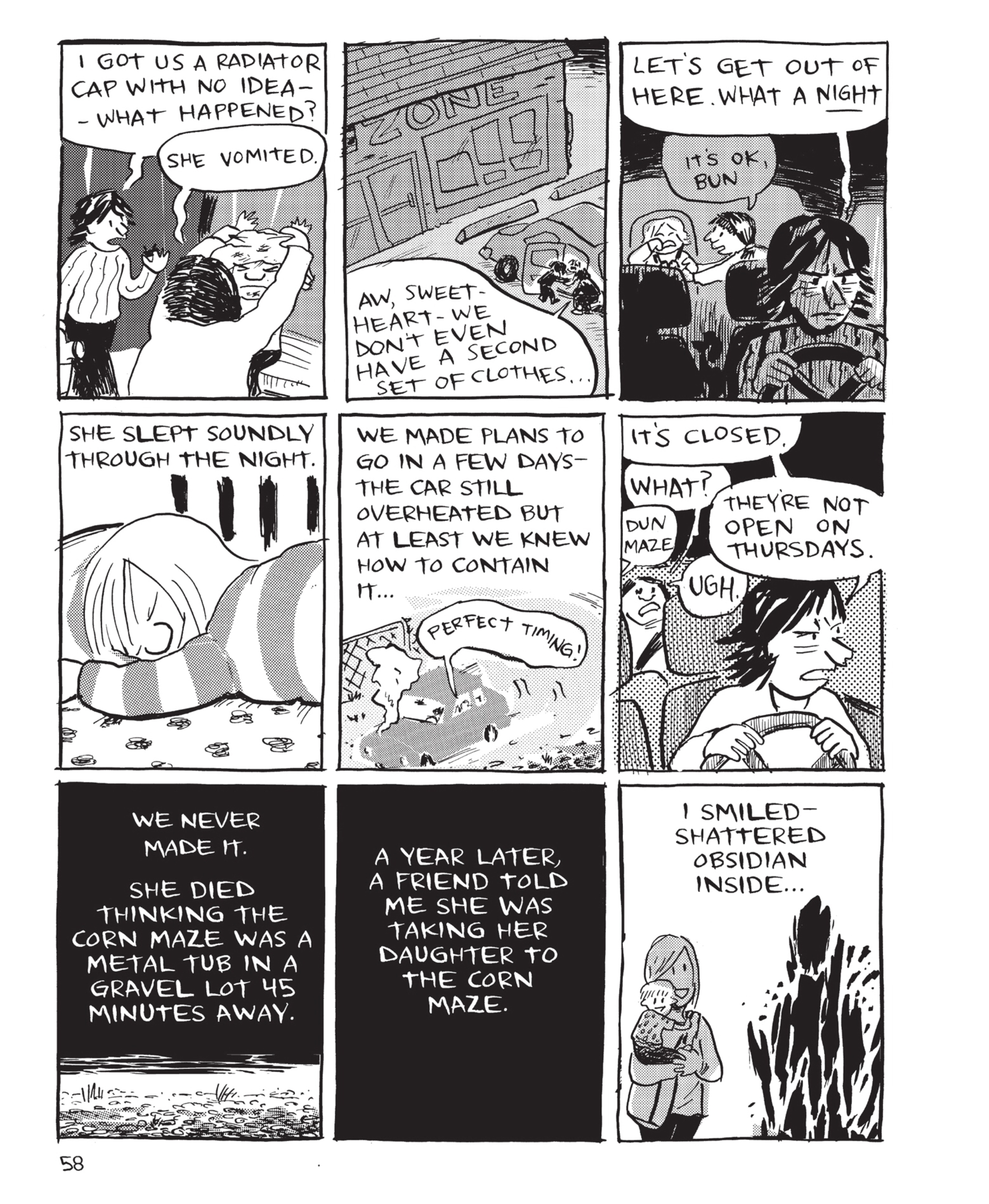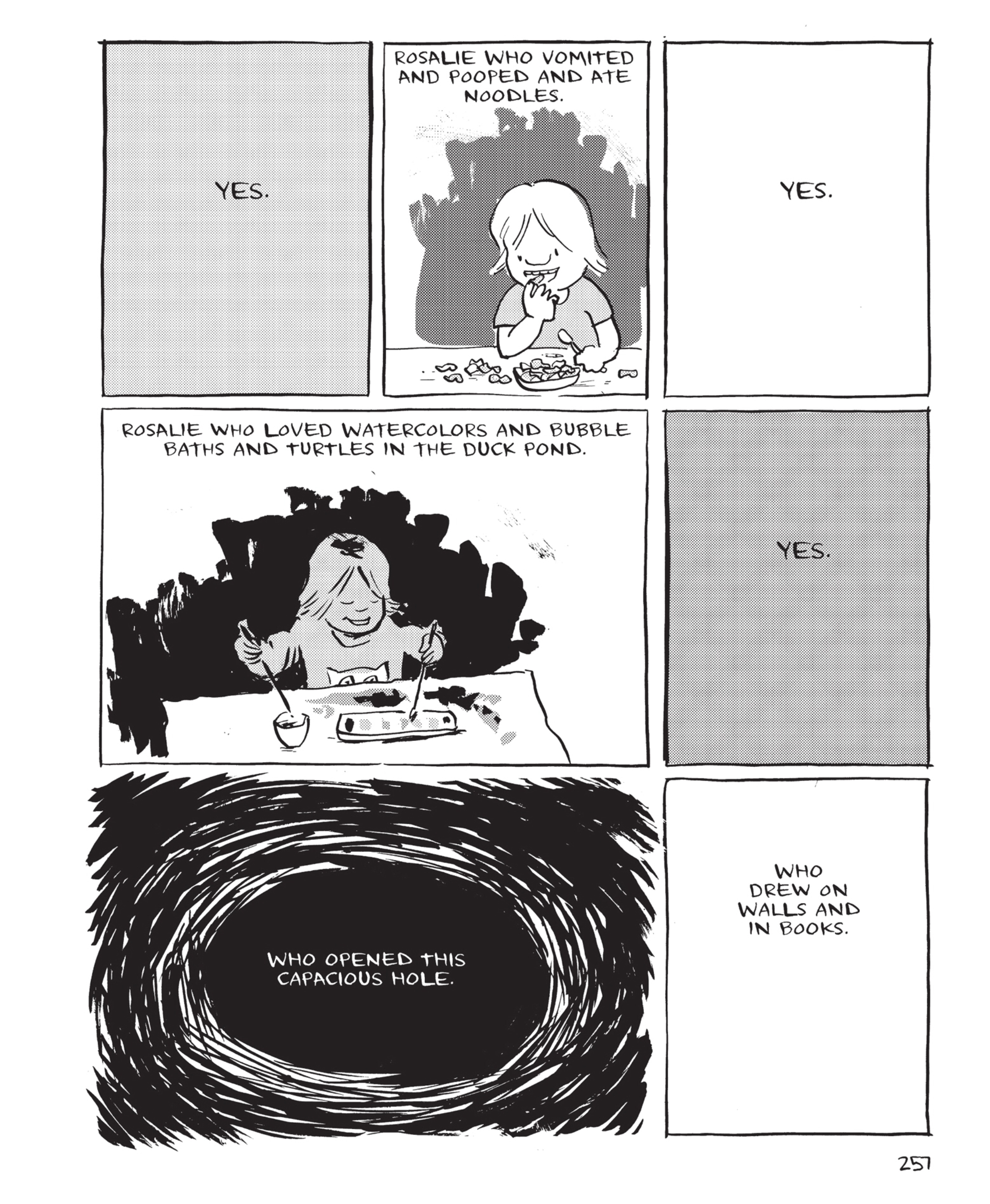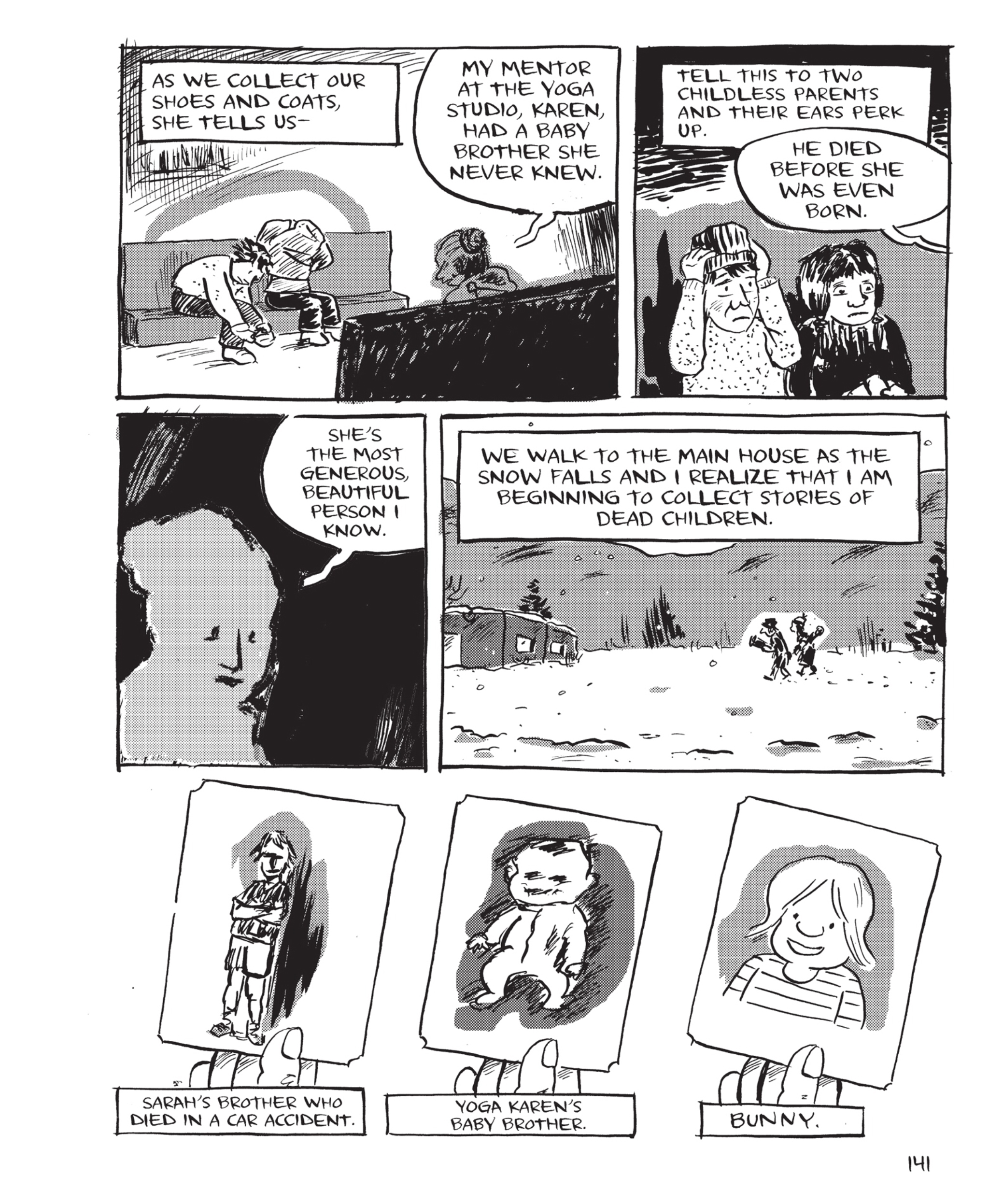 For those who want to go in blind, the description has been spoilered.>Tom Hart's two-year-old daughter Rosalie was a bundle of energy: always running, exploring, and fascinated by the world around her.>But one night, when Tom went to check on her in her crib, he found her silent, still, and unbreathing. Without a sign that anything had been wrong, she had passed away in her sleep. >This touching and beautiful graphic novel memoir tells the heartbreaking story of the untimely death of the author's young daughter, and the solace that Hart finds in nature, philosophy, literature, and art. Rosalie Lightning is a graphic masterpiece chronicling a father's undying love, and a tribute to much-missed baby girl.