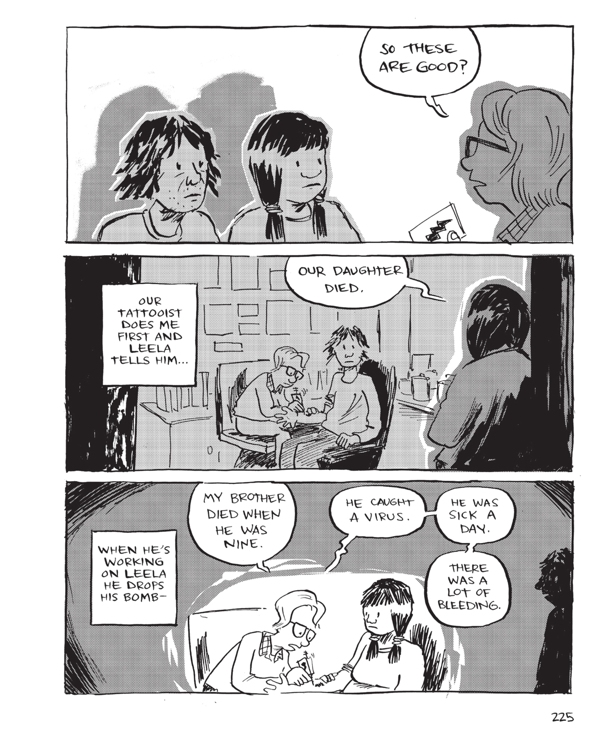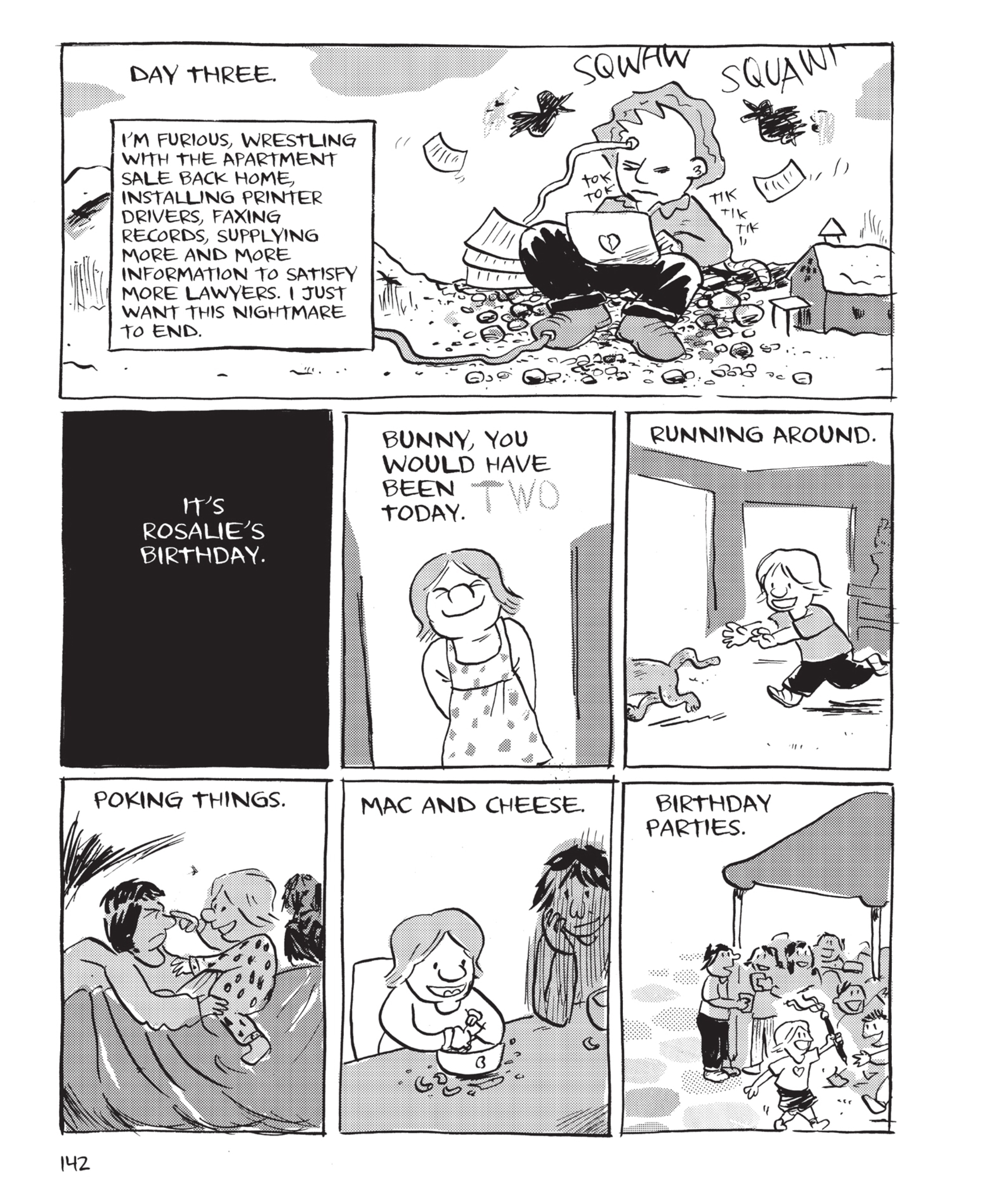 >MUTHA: You have a second daughter, now. How do you imagine her relationship to the book?>TOM HART: I’m less interested in the relationship to the book than I am in her relationship to her sister. I don’t know how that will develop. We talk about Rosalie now more than ever, because Molly Rose is at the age that Rosalie was—she’s a little older, but her sense of humor is now coming out. Her assertiveness is coming out, her language has just surpassed Rosalie’s. Molly Rose hears everything we’re saying, I’m sure.>MUTHA: Oh, they do! I know—and I have a very hard time around my daughter, not to wear my heart on my sleeve.>TOM HART: We don’t really know how we should be careful.>MUTHA: Has Molly Rose asked you who Rosalie is?>TOM HART: No, she’s still too young. She’s like “Stop!” “Give me that!” “I want to follow you to the bathroom!”>MUTHA: She spilled the ink over the table at the New York book signing…. That was funny.>TOM HART: No that was me! I was tired.https://www.muthamagazine.com/2016/05/grief-struck-an-interview-with-tom-hart-on-rosalie-lightning/