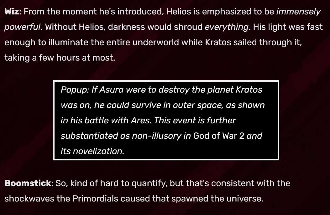 >>151904880Then post Spawn beating god or death battle saying he beat God.Oh wait you can’t, cause you’re lying. Uh oh.Post DB saying yggdrasil is only 4D. Oh wait you can’t, and Cory Barlog himself said it is infinite D. Uh oh.No? It means the feat makes sense in the context of another feat.If Helios’ light crossed an infinite space, then the Primordials creating a finite soace is consistent with it.Cope and Seethe and post your non existent lying claims, cucky spawnbro