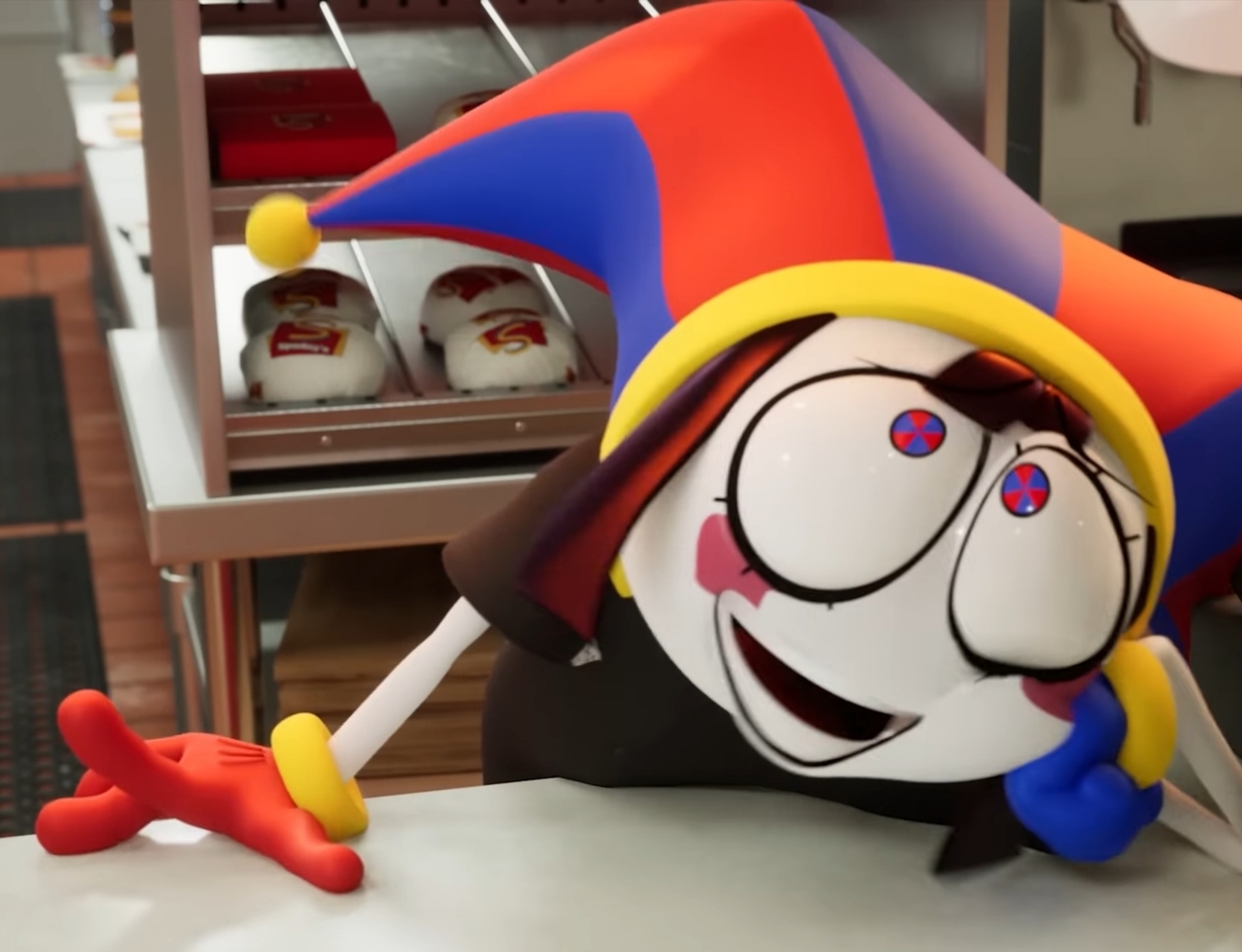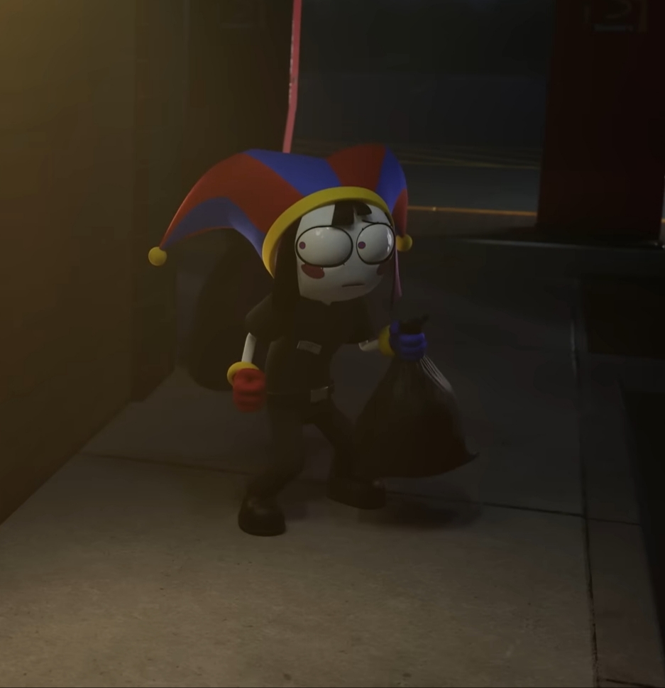 A wild Pomni is stealing your garbage, how do you respond?