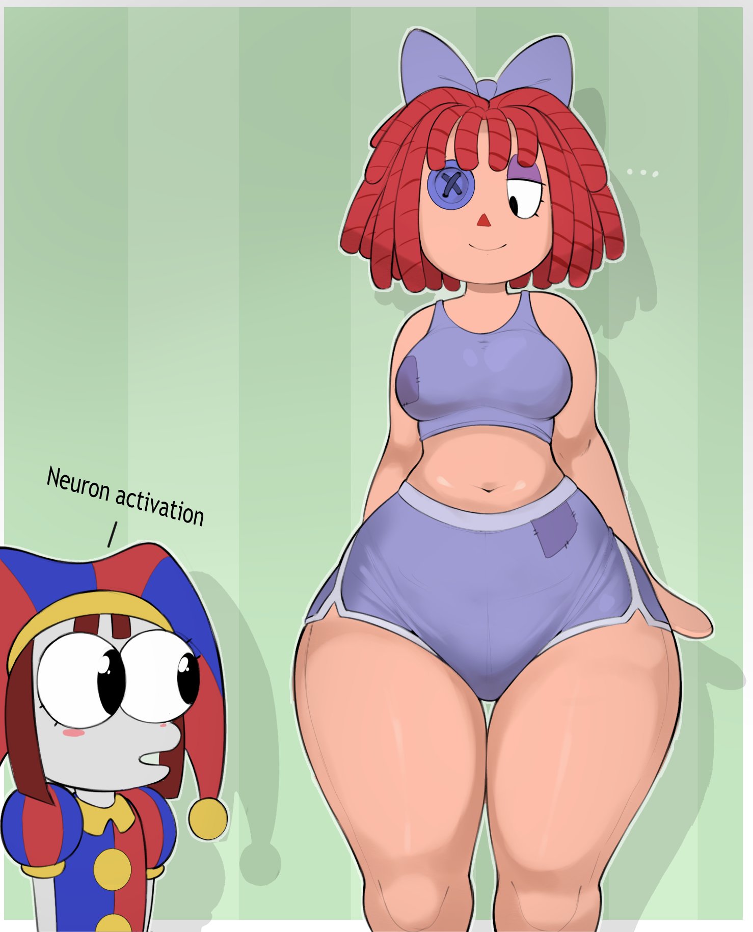 Gangle. Has had sex at anime conventions with degenerate losers because she has low self esteem. This is why she can actually get along with Jax sometimes.