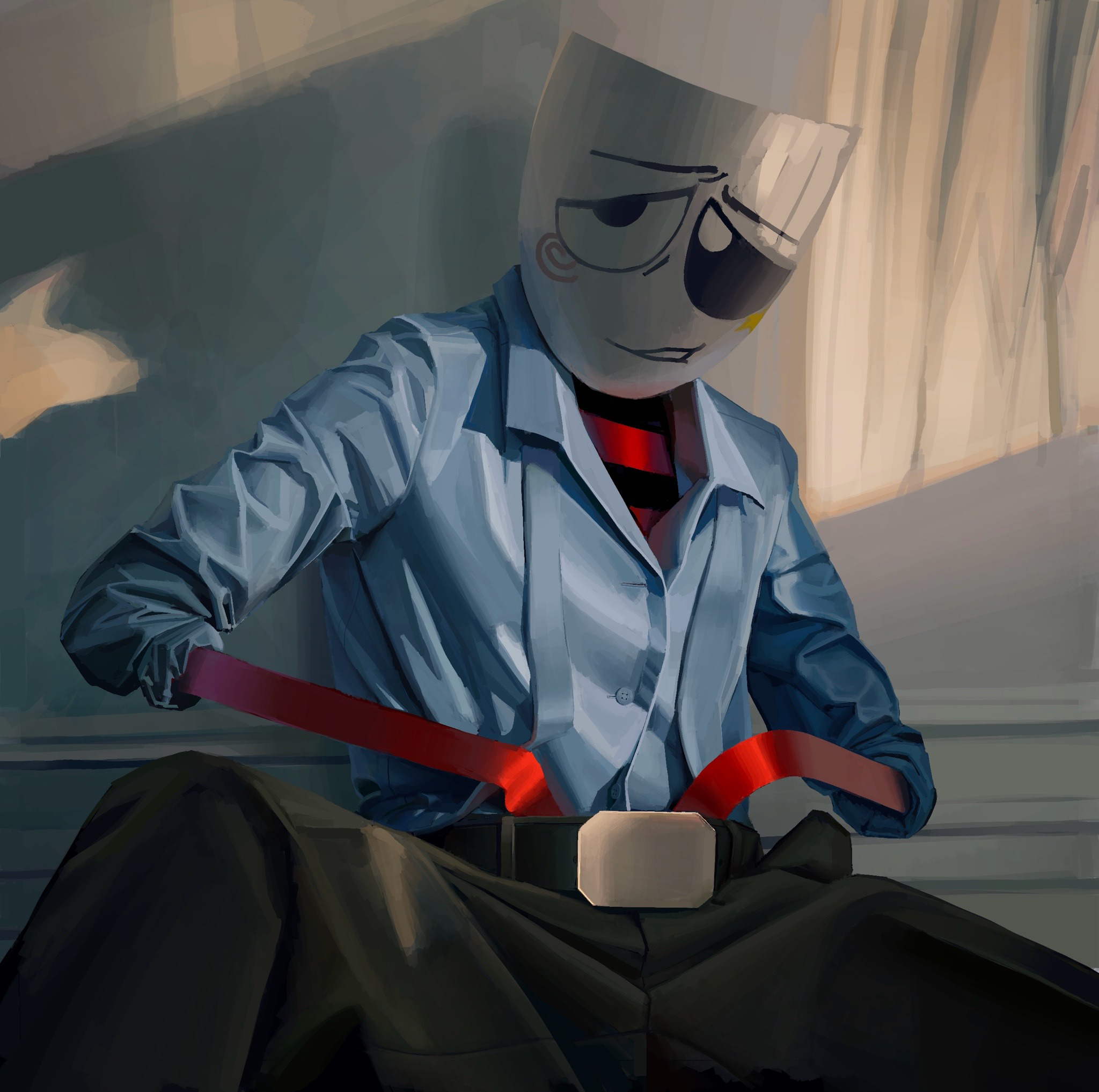 creepy, like wearing face mask at home