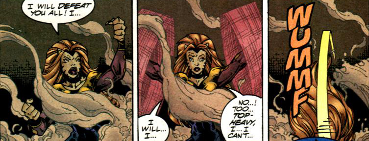 >>151925046>>151925064Those breasts aren't even that big, certainly not enough to make someone with superstrength topple over