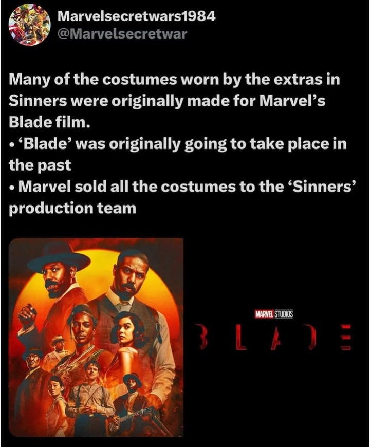 It's pretty funny that Marvel literally had Ryan Coogler in their pocket and yet he still went on to make his own vampire period piece movie on his own, using props originally created for the Blade film.