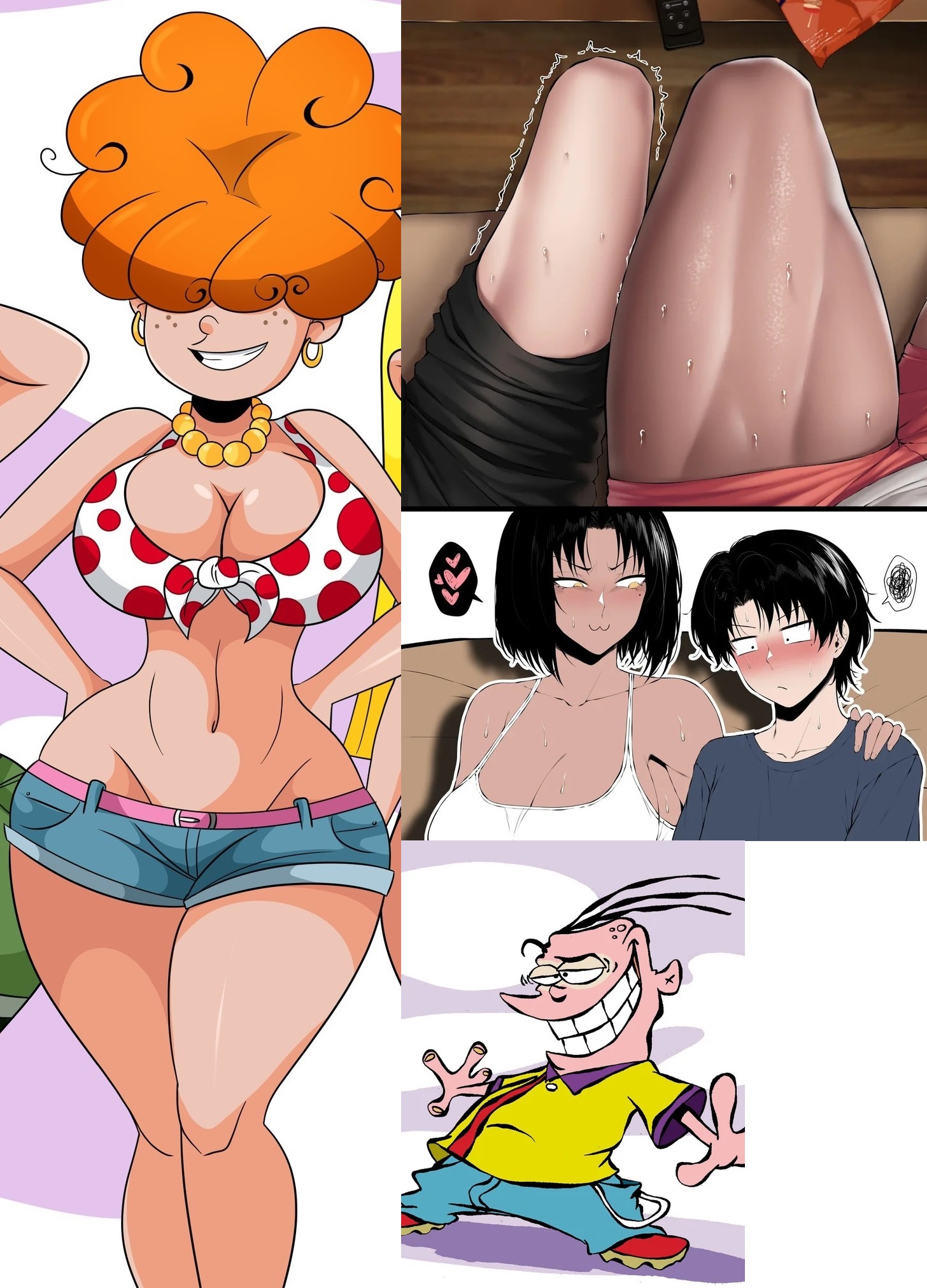 Requesting the meme on the left with Kimiko and Bonkers. Have Kimiko lying on the sofa reading some BL or something like that, while Bonkers sits like an old grandpa on the sofa reading the newspaper, saying something like "smells kinda fishy in here."