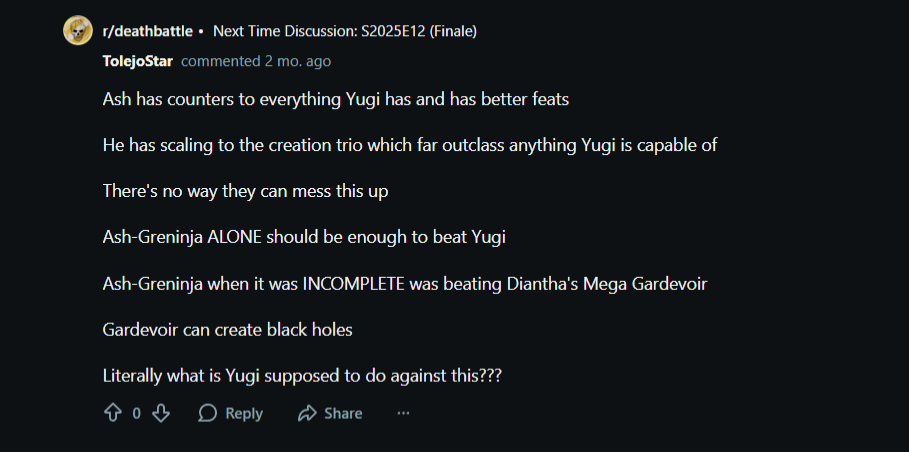 This SHOULD work but as you can see the diehard Gojo stans are sore winners saying "Limitless would just tank lolololol" and the sad part is Death Battle encouraged them with the episode itself AND in the Question and Answer they did right after. They can just say Gojo's numbers are bigger and it doesn't matter because Death Battle said so.