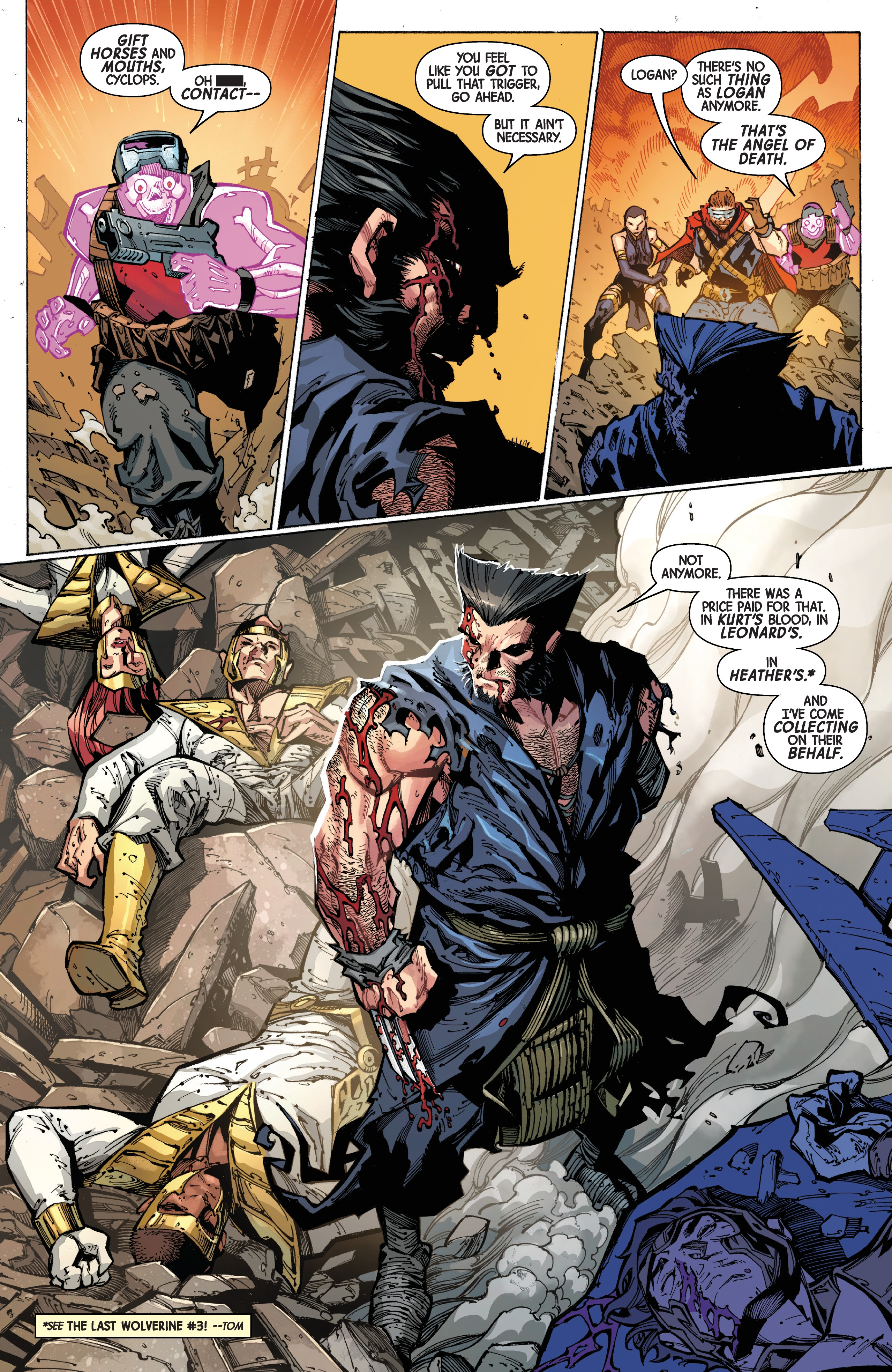 This being the last issue of the event means that we're might be seeing some characters from the tie-ins popping up, starting with Logan!