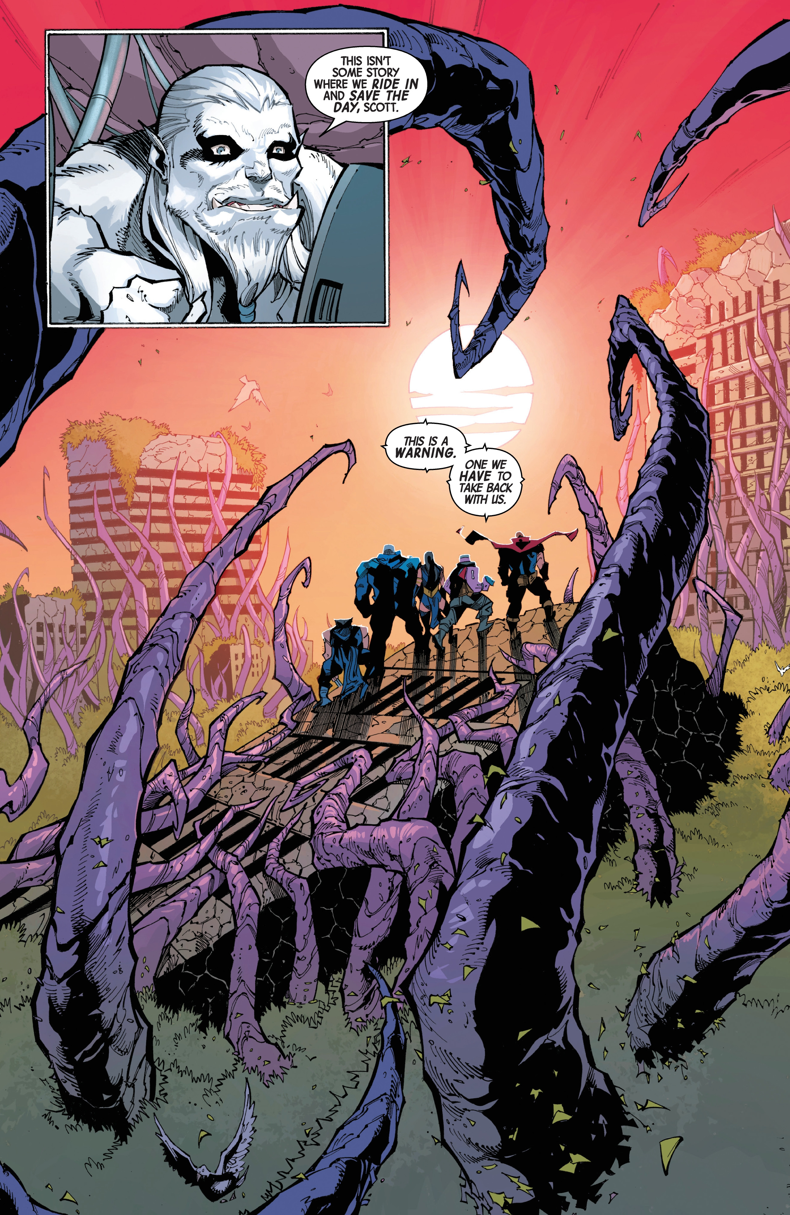 >"This isn't some story where we ride in and save the day, Scott. This is a warning."Did we really have to spend 3 months and 50-ish tie-ins for "a warning", though?