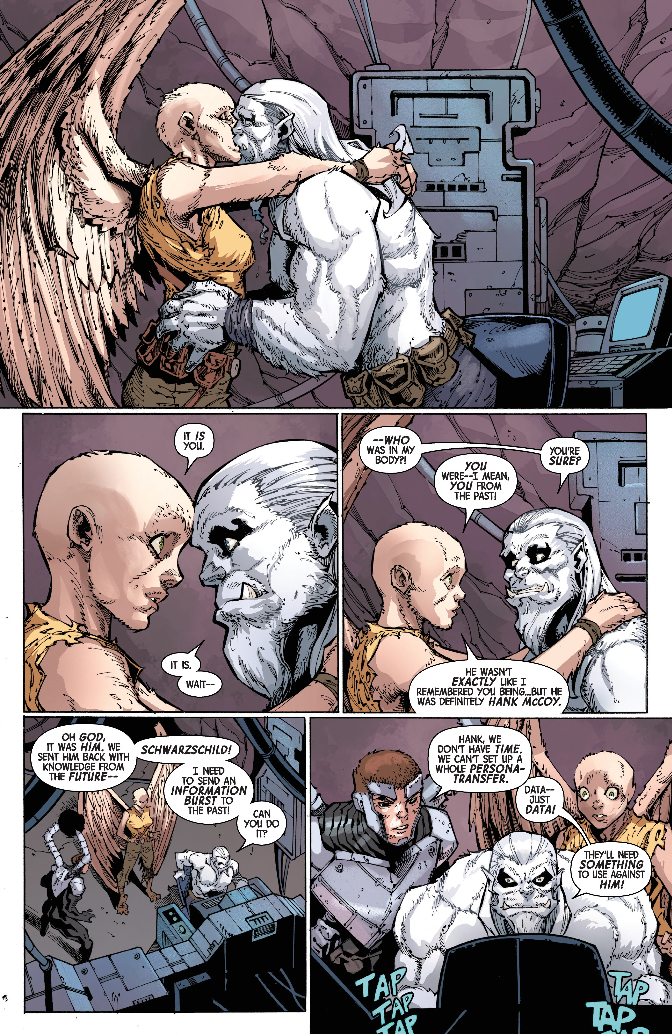 Good thing that AoR-Hank realized what just happened and sent some (hopefully useful) intel for the X-Men to use in the present.